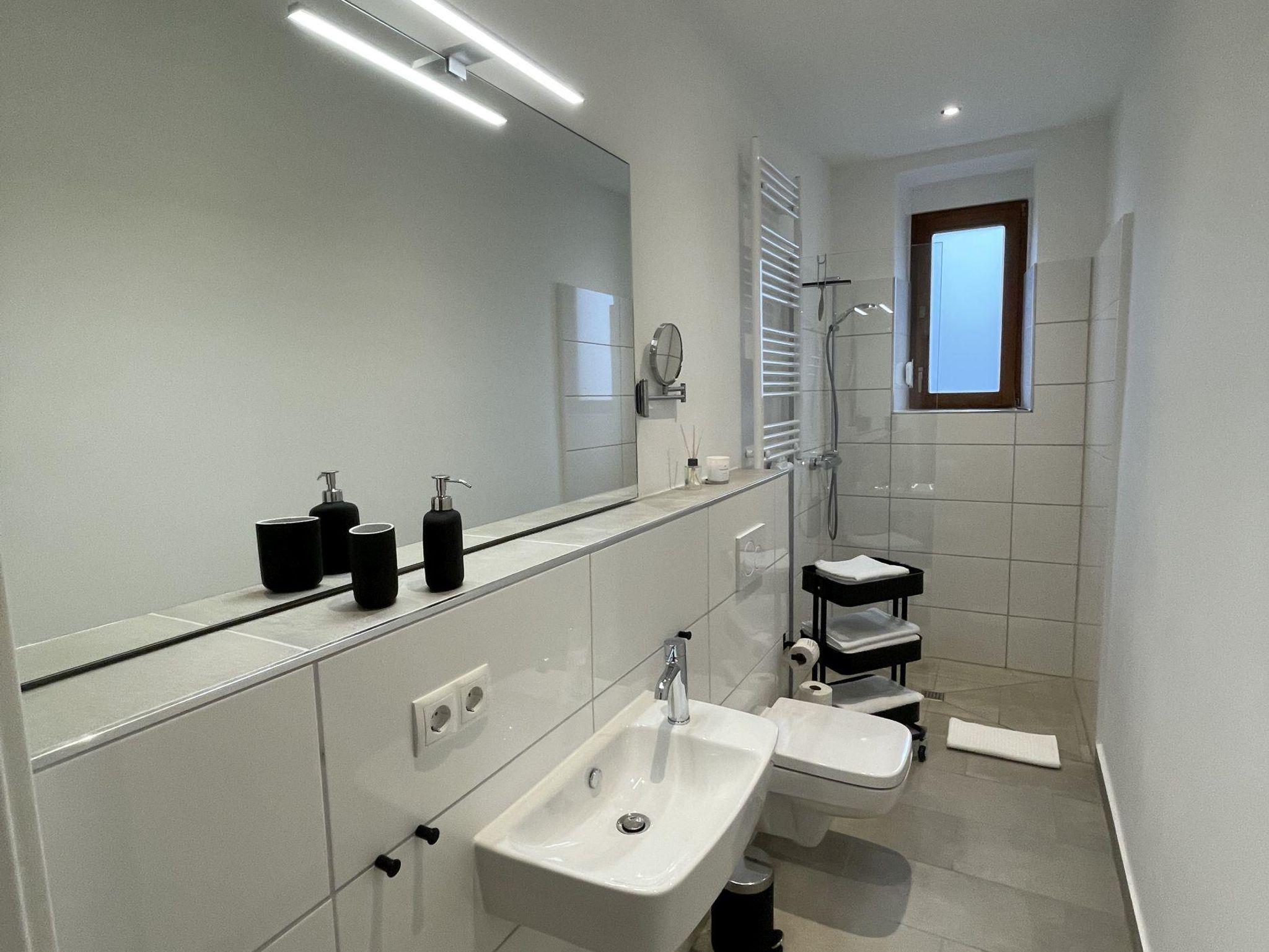- 1 Bad mit ebenerdiger Dusche, 1 Bad mit Badewanne + Dusche