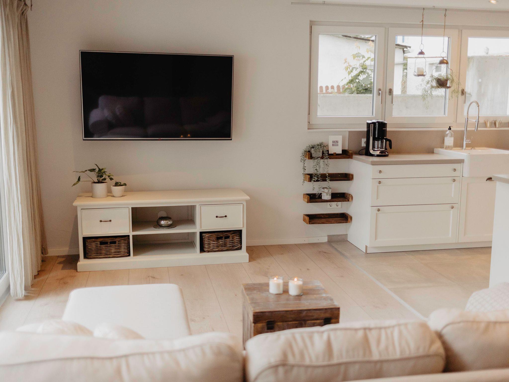 Die Eigentumswohnung wurde 2014 erbaut und verfügt über eine Fußbodenheizung, sowie 3-fach verglasten Fenstern mit Jalousien. Die Wohnung befindet sich in der Oberen Hauptstraße. Der ganze Gebäudekomplex ist zurück versetzt, weshalb sich nur unsere Garage sowie der Parkplatz direkt an der Straße befindet. Hinter dem Parkplatz befindet sich unser Eingangstor, durch das ihr zur Wohnung und unserem Innenhof gelangt.