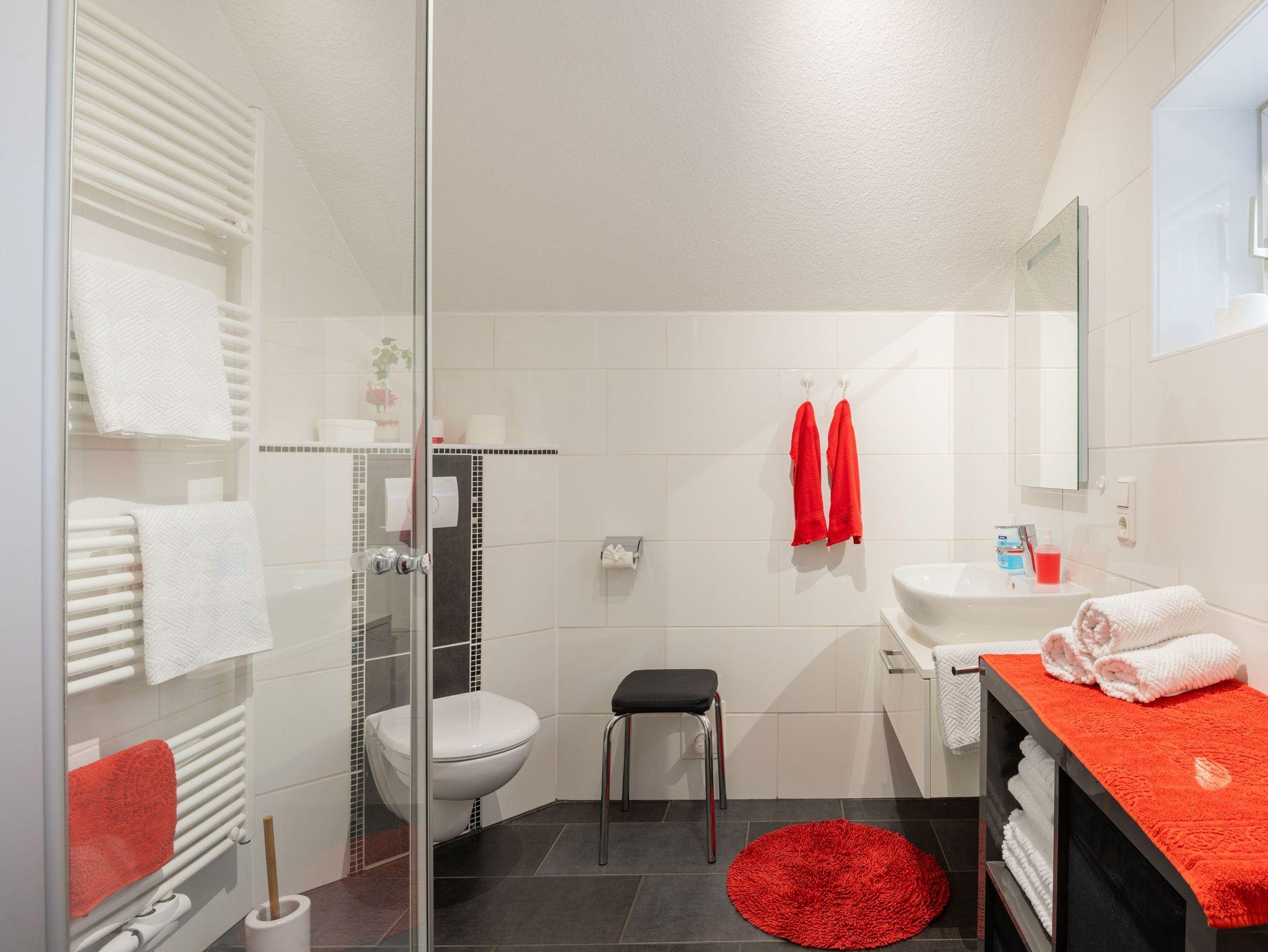 Das geschmackvolle Wohnzimmer verfügt über eine große Wohnlandschaft sowie einen zweiten Flachbildfernseher. Unser modernes Badezimmer befindet sich ebenfalls im Erdgeschoss mit einer Rainshower Dusche (mit flachem Einstieg), WC, Waschbecken und Haartrockner und Handtücher inkl..
