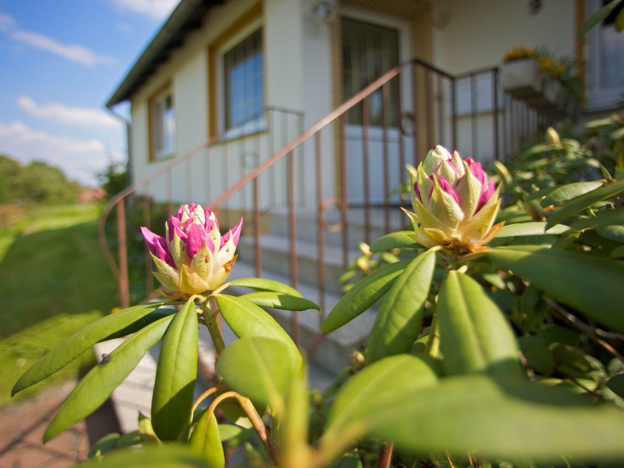 The living room has a 6 square metre balcony with a large table and chairs for breakfast in the morning sun. Next to the house there is a partially fenced meadow area which can also be used.