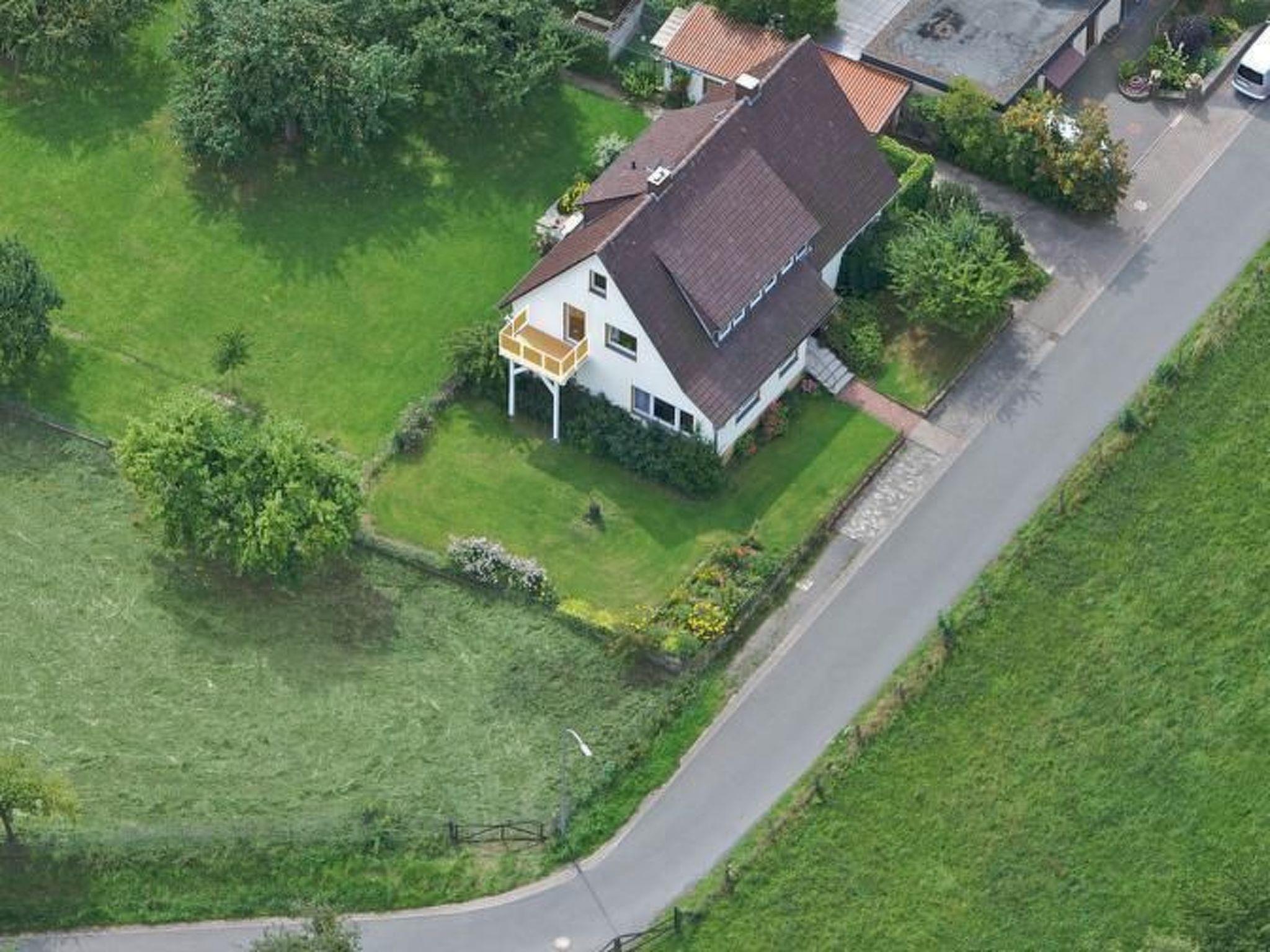 The holiday flat in the Weserbergland is located in Hessisch-Oldendorf in the Rumbeck district. It is situated in a quiet street with little traffic and surrounded by greenery. The landlord lives on the ground floor, the holiday flat is on the first floor.