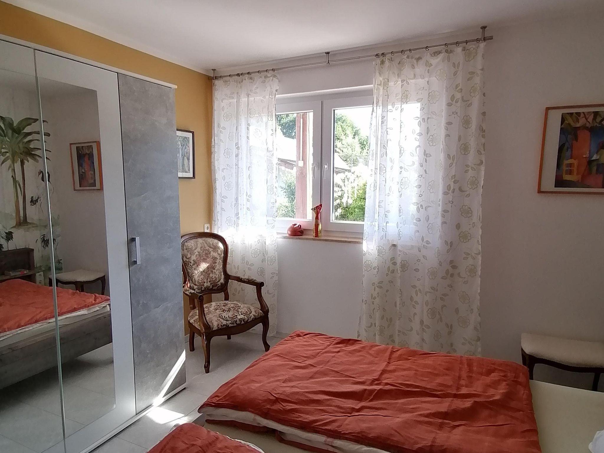 Ca. 80 qm Wohnfläche bieten Platz für 1-5 Personen (notfalls 6). Das Wohnzimmer verfügt über einen großen Esstisch, Schlafsofa, TV und Steroanlage. Die Küche ist mit Geschirrspüler, Kühlschrank inkl. Gefrierfach, Herd, Backofen, Mikrowelle, Wasserkocher, Eierkocher, Toaster und Kaffeemaschine komplett ausgestattet. Ein Schlafzimmer mit Doppelbett und ein kleinerer Schlafraum mit Etagenbett stehen zur Verfügung. Das Badezimmer verfügt über Dusche, Toilette, großen Spiegel und Waschmaschine. Highspeed Wlan und Parkplätze kostenlos. Bitte beachten Sie, dass keine Haustiere erlaubt sind.
