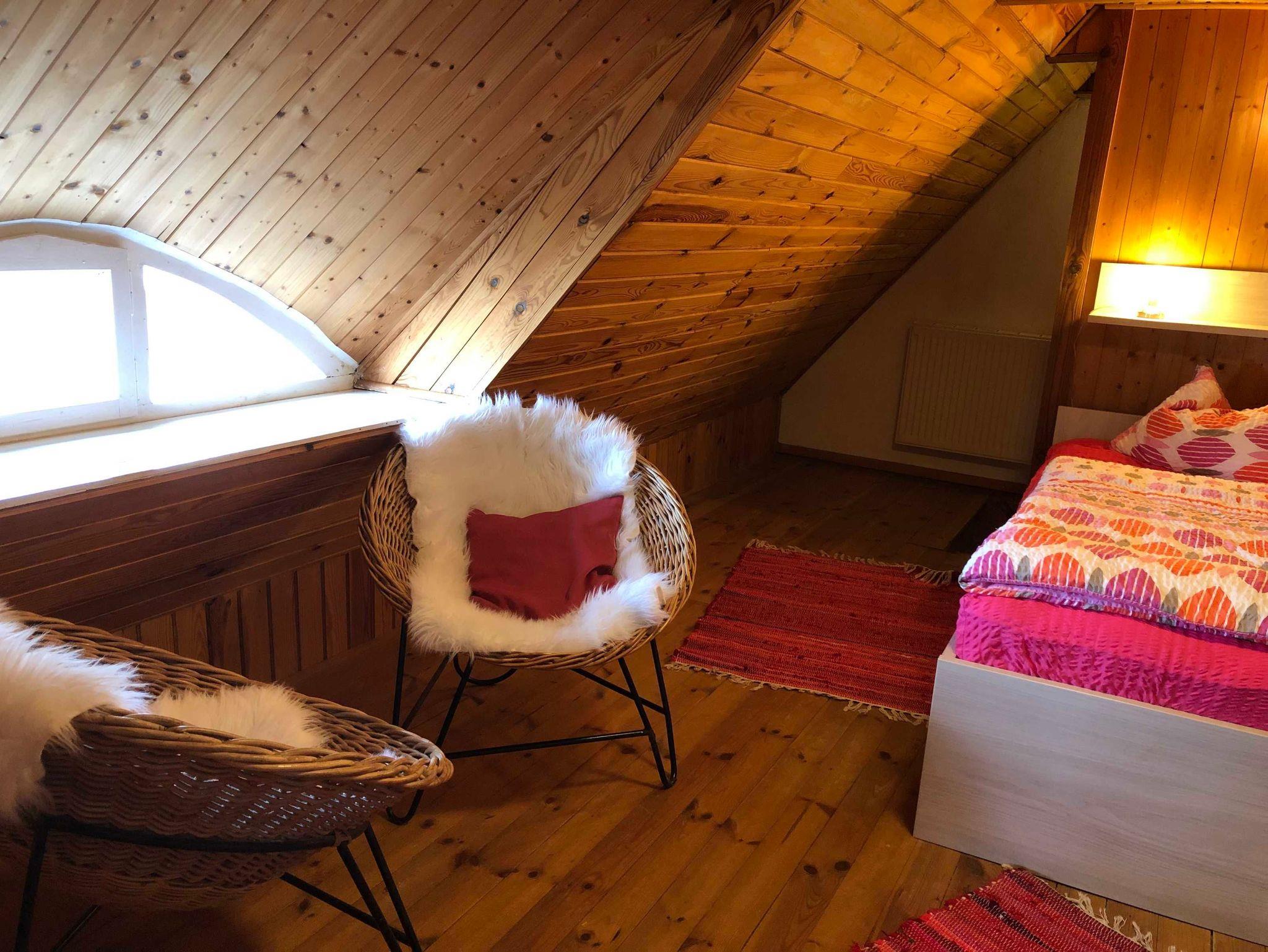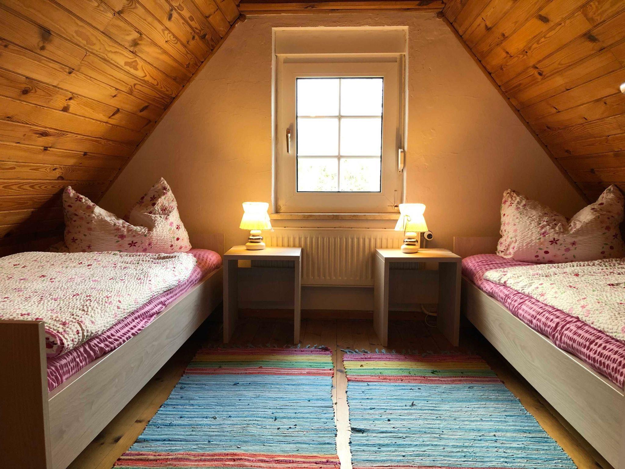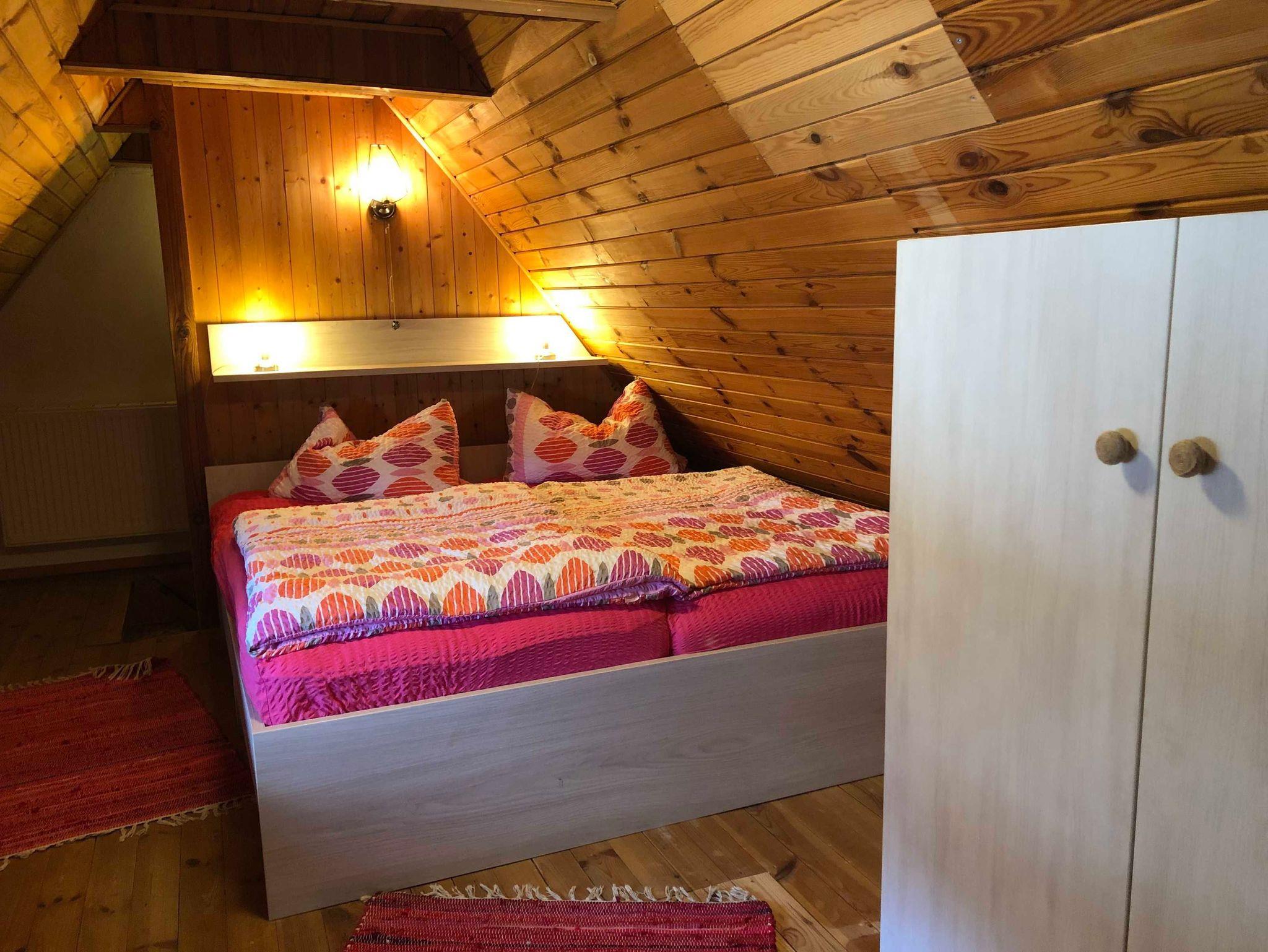 60 m² große Ferienhaus über 2 Etagen mit Wohnzimmer inkl. Sat-TV, vollausgestattete Küchenzeile mit 4 Herdplaten, Backofen, Wasserkocher, Kaffeemaschine, 1 Badezimmer mit Dusche/WC und einem schönen Ausblick in den Garten.