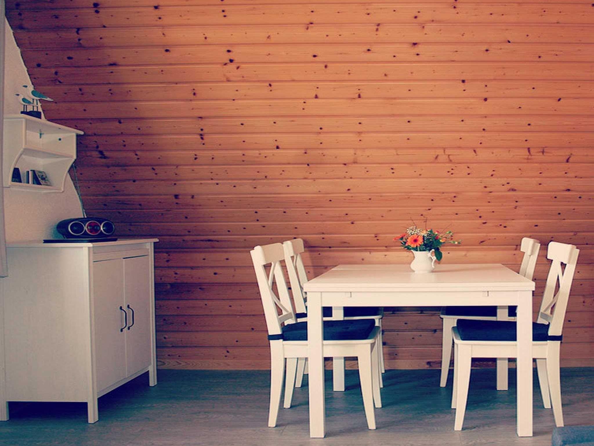 In der Küche lassen sich allerlei Köstlichkeiten zubereiten, die Sie wahlweise am Esstisch oder an ihrem eigenen Gartentisch im Freien genießen können.