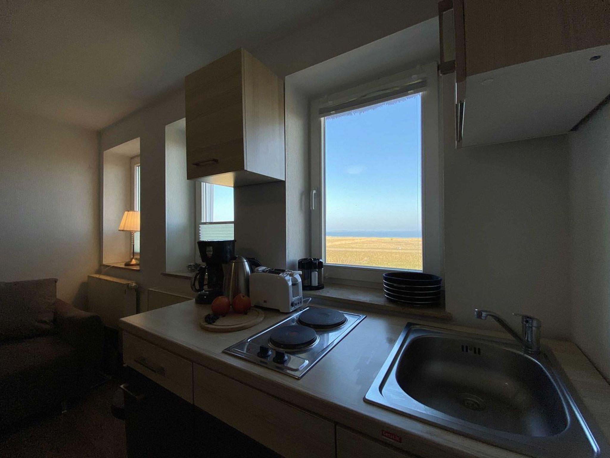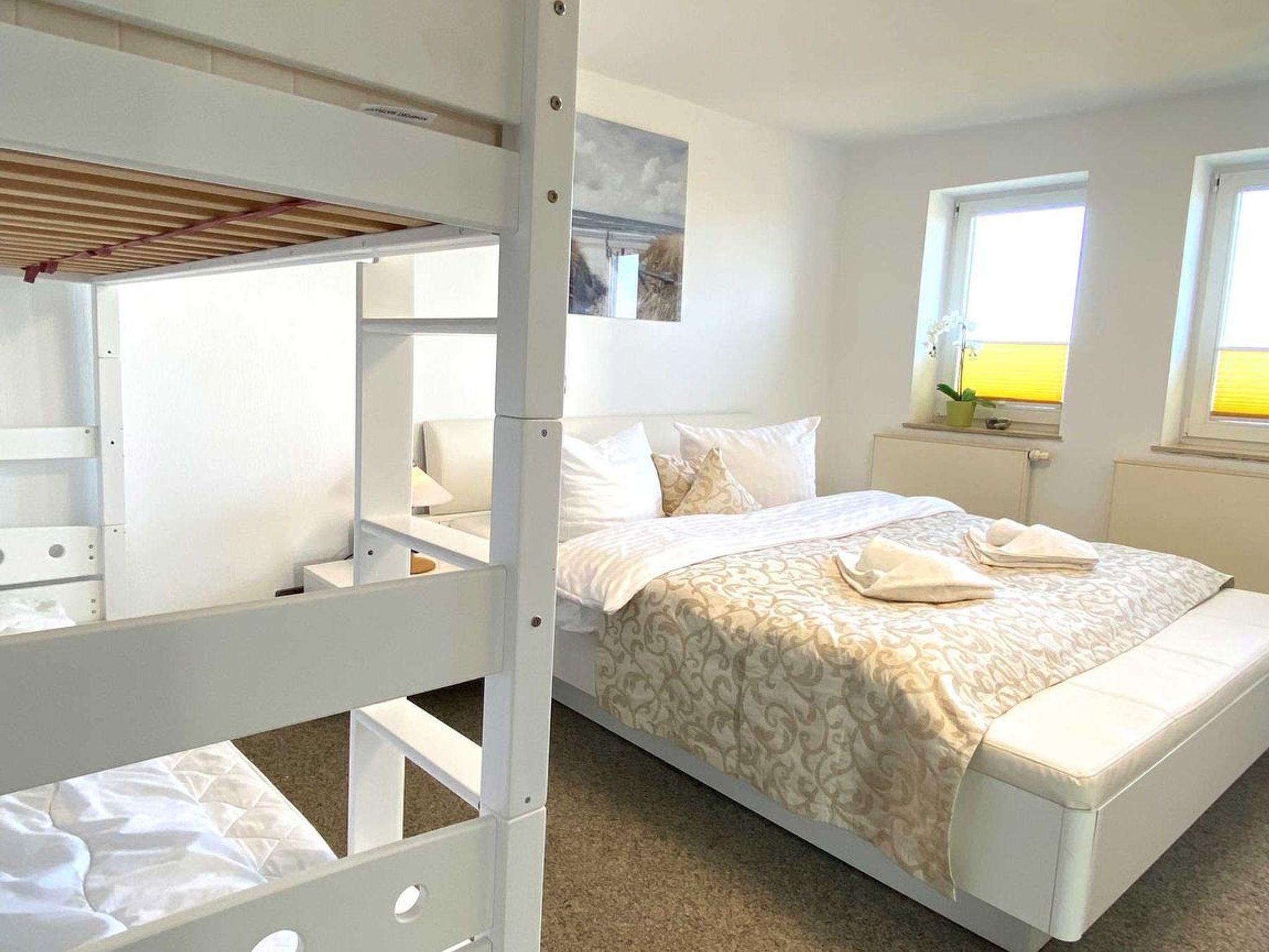 Das helle und freundliche 3-Raum Appartement befindet sich im Dachgeschoss des Süderhauses. Die Größe von 45 Quadratmetern eignet sich für einen Urlaub mit bis zu 5 Personen.[nbsp] In dem kombinierten Wohn-, Ess- und Kochbereich finden Sie ein gemütliches Sofa mit Ausziehfunktion, einen Esstisch und einen Flat TV. Bereiten Sie für Ihre Lieben in der intergrierten Pantryküche ein leckeres Mittag- oder Abendessen zu. Diese ist mit einem Kühlschrank, Gefrierfach, 2 Kochplatten, Wasserkocher, Toaster, Kaffeemaschine, Gläser, Besteck und Kochutensilien ausgestattet.[nbsp] Das erste Schlafzimmer bietet Platz für 4 Personen und ist ausgestattet mit einem Doppelbett, einem Etagenbett und einem Flat-TV. Das zweite Schlafzimmer bietet Platz für zwei weitere Gäste, auf dem gemütlichen Sofa mit Schlaffunktion und Flat TV.[nbsp] Das Badezimmer verspricht einen entspannten Relaxkomfort mit Eckbadewanne und Dusche. Ein WC und ein Haarföhn sind ebenfalls vorhanden.