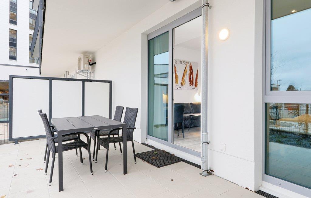 Denne eksklusive ferielejlighed i ferieanlægget High End kombinerer kvalitet, design og fantastisk beliggenhed direkte ud til stranden i Lübeck Travemünde.