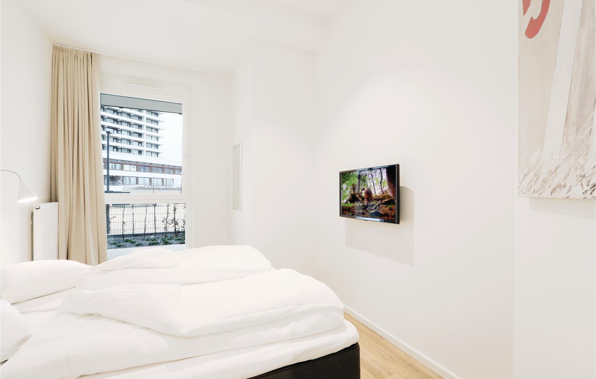 I stuen kan I slappe af og nyde varmen og lyset fra biokaminen. Naturligvis er ferielejligheden i Travemünde Waterfront udstyret med moderne entertainment-system med bluray, musikanlæg med mp3-indgang samt to fjernsyn. I stuen finder I også en sovesofa med to sovepladser. Barnesengen skal stå i stuen, da der ikke er plads i soveværelserne.