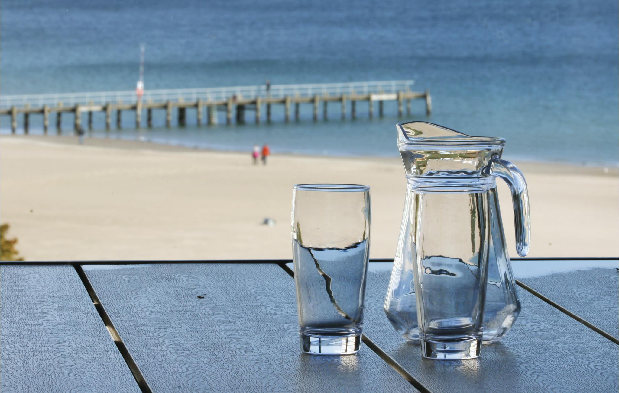 På altanen kan I nyde den friske Østersøluft, panoramaudsigten og lyden af bølgerne der slår mod stranden mens I indtager jeres måltider sammen. En lille sti fører til receptionen hvor I kan leje en kikkert, så I rigtig kan nyde naturen og omgivelserne.