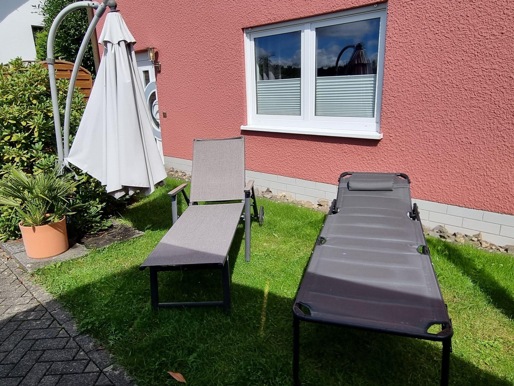 In unserer 42 m² modernen Einliegerwohnung haben wir für Sie eine gemütliche Oase zum Wohlfühlen eingerichtet. Die Ferienwohnung liegt direkt am Waldrand, nur 2oo m vom Rothaarsteig-Zugangsweg und 2,5 km vom Zentrum entfernt. Vor der Ferienwohnung finden Sie einen Tisch und Stühle sowie eine Sonnenliege zum Verweilen im Garten.