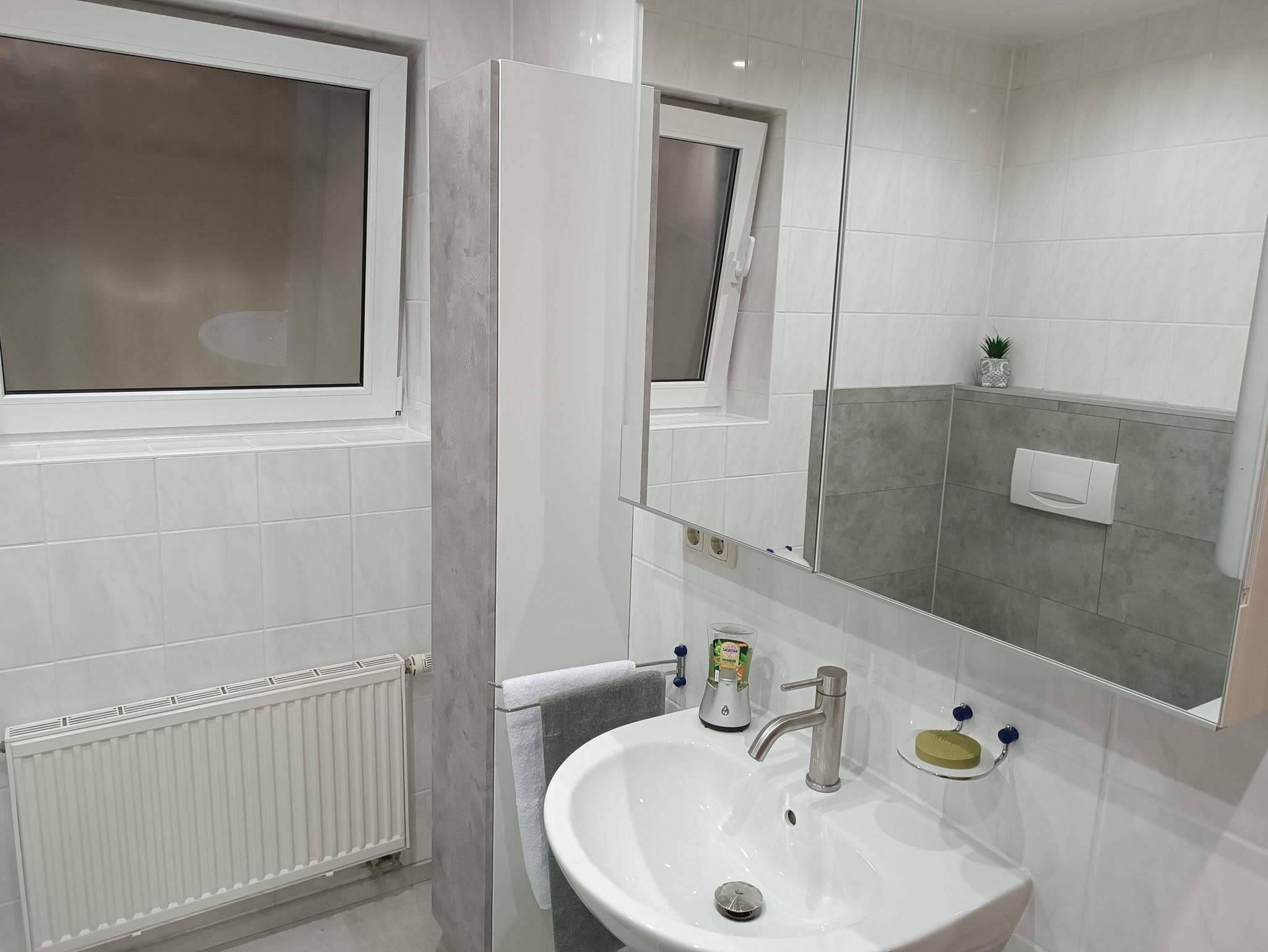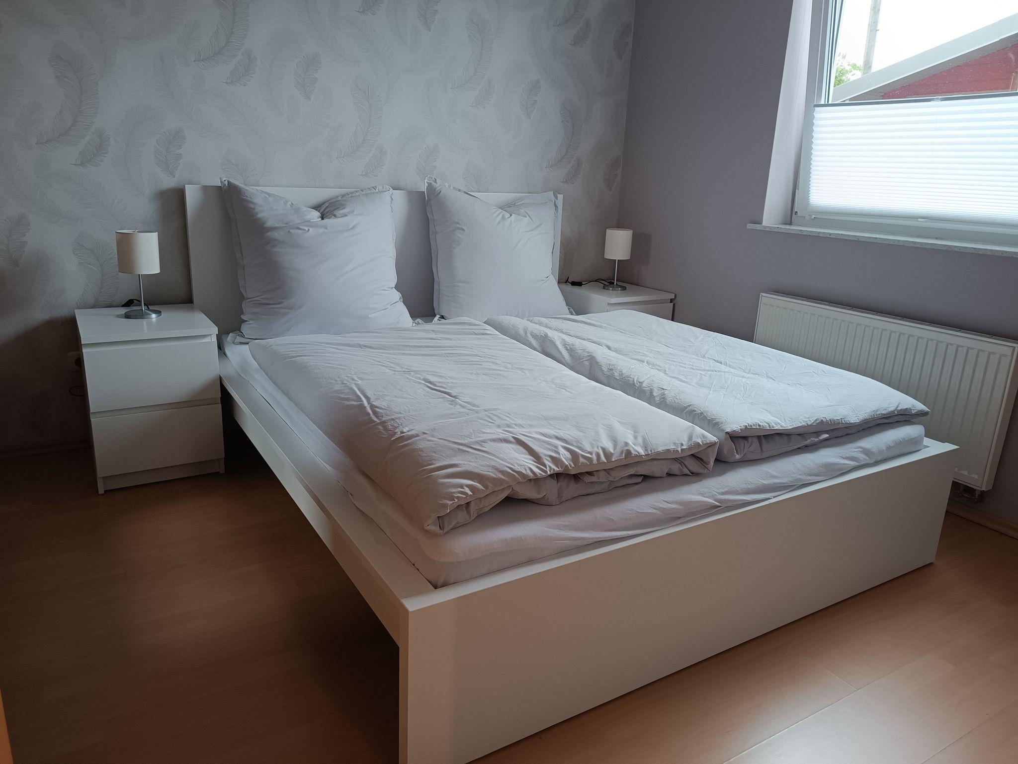 Die Ferienwohnung verfügt über eine großzügige eingerichtete Küche mit Herd, Backofen, Mikrowelle und großem Kühlschrank. Selbstverständlich finden Sie dort auch Eierkocher, Wasserkocher und eine Kaffeepadmaschine. Im Wohn-Essbereich befindet sich für einen gemütlichen Aufenthalt ein Smart TV, ein Esstisch für 2 Personen, ein Sofa mit Tisch sowie ein Relaxsessel. Im Schlafzimmer befindet sich ein 200 x 160 cm großes Doppelbett mit beleuchteten Nachtschränkchen sowie ein großzügiger 6türiger Kleiderschrank mit Spiegeln. Das Bad mit Dusche, WC, Fön, Handtüchern zum Wechseln sowie Pflegeartikeln runden das Gesamtbild ab. Rauchen ist nur vor dem Haus gestattet.