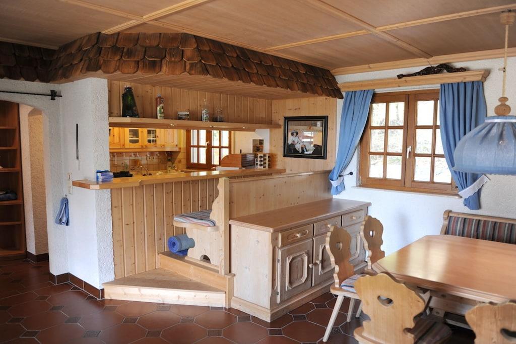 Dieses charmante und ökologische Ferienhaus mit 60 qm (UG nicht vermietbar) in der Rhön eignet sich für 4 Personen und ist mit 2 Schlafzimmern ( 1 SZ mit Doppelbett, 1 SZ mit Etagenbett) , 1 Badezimmer und einer großen Südterrasse ausgestattet. Die Wärmeerzeugung übernimmt eine neue, effiziente Luft-Wärmepumpe. Die Essbar verbindet den Wohnbereich mit der Küche und lädt zum gemütlichen Beisammensein ein. Die Zentralheizung sorgt für ein Wohlfühlklima und der Kaminofen erwärmt das Herz mit seinem offenen Feuer. Das Ferienhaus ist im Rhöner Charme mit Rhöntisch, Eckbank, 2 Sessel und Holzdecke mit einem Schindeldach über der Bar nachempfunden. Die hellen Hölzer lassen einen sofort im Urlaub ankommen und laden zu langen Spieleabenden ein. Das Haus ist geeignet für 3 Erw. + 1 Ki oder 2 Erw. + 2 Ki oder 2 Erw.