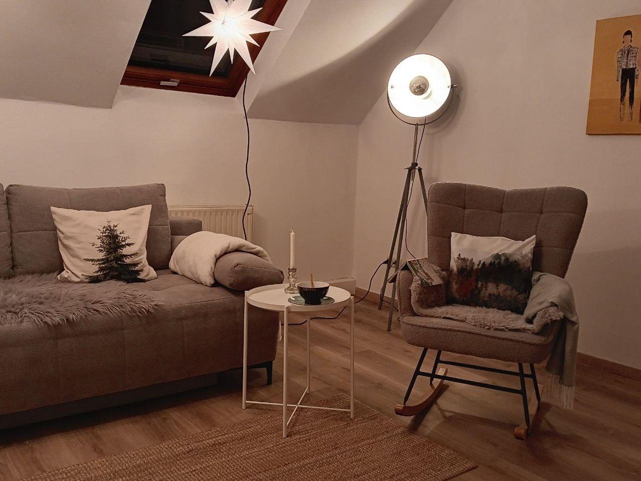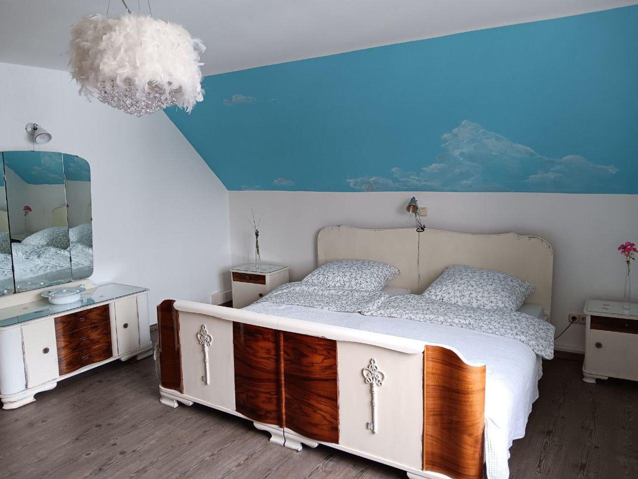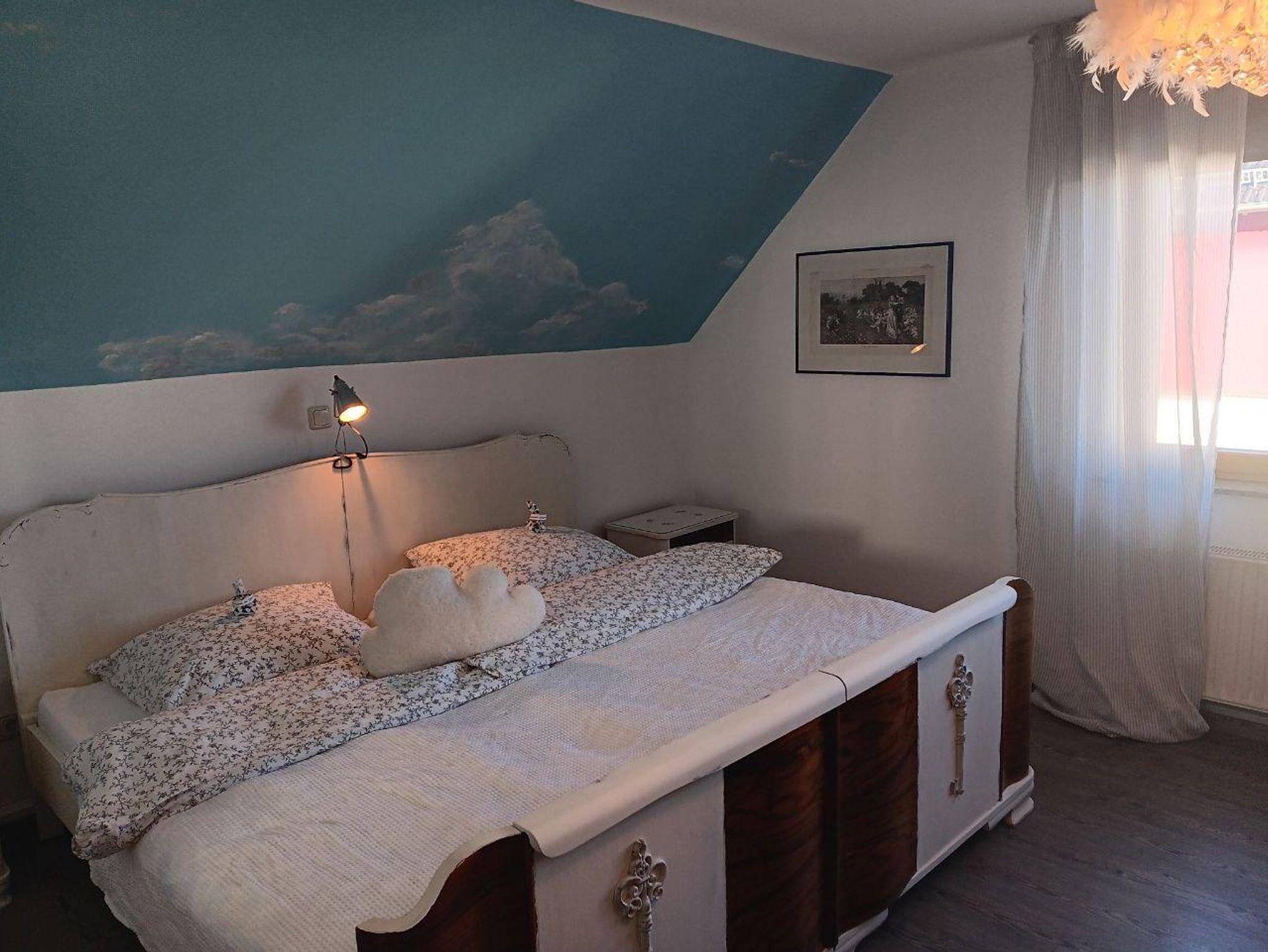 Unsere 110 qm große Ferienwohnung ist mit viel Liebe für´s Detail in einem Mix aus alt & neu eingerichtet. Die lichtdurchflutete Wohnung liegt im 1. Stock und kann bis zu sieben Gäste beherbergen. Die Wohnung setzt sich zusammen aus einem geräumigen Wohn-/ Esszimmer mit großem Esstisch und einer bequemen Dauerschlafcouch, die auch für große Mitmenschen geeignet ist, einer gemütlichen und umfangreich ausgestatteten Küche mit Herd, Backofen, Kühl-/ Gefrierkombi, Geschirrspüler, Wasserkocher, Kaffeemaschine und Toaster, zwei Schlafzimmern (1x mit Doppelbett, 1x mit drei Einzelbetten), einem Flur sowie einem Bad mit WC, Dusche und Badewanne. Ergänzt wird die Wohnung von einer überdachten Loggia, die sowohl vom Wohn-/ Esszimmer als auch von der Küche erreichbar ist und einem großen Garten, der zum Grillen und Entspannen mitbenutzt werden darf. Wäsche waschen, einen Eisvorrat im Gefrierfach anlegen, das Spülen der Spülmaschine überlassen, Baby- Beistellbettchen und Kinderhochstuhl, Spielmöglichkeiten für Kinder- unsere Wohnung ist besonders für Familien mit Kindern optimal und reichhaltig ausgestattet- für alle anderen Gäste aber natürlich auch.