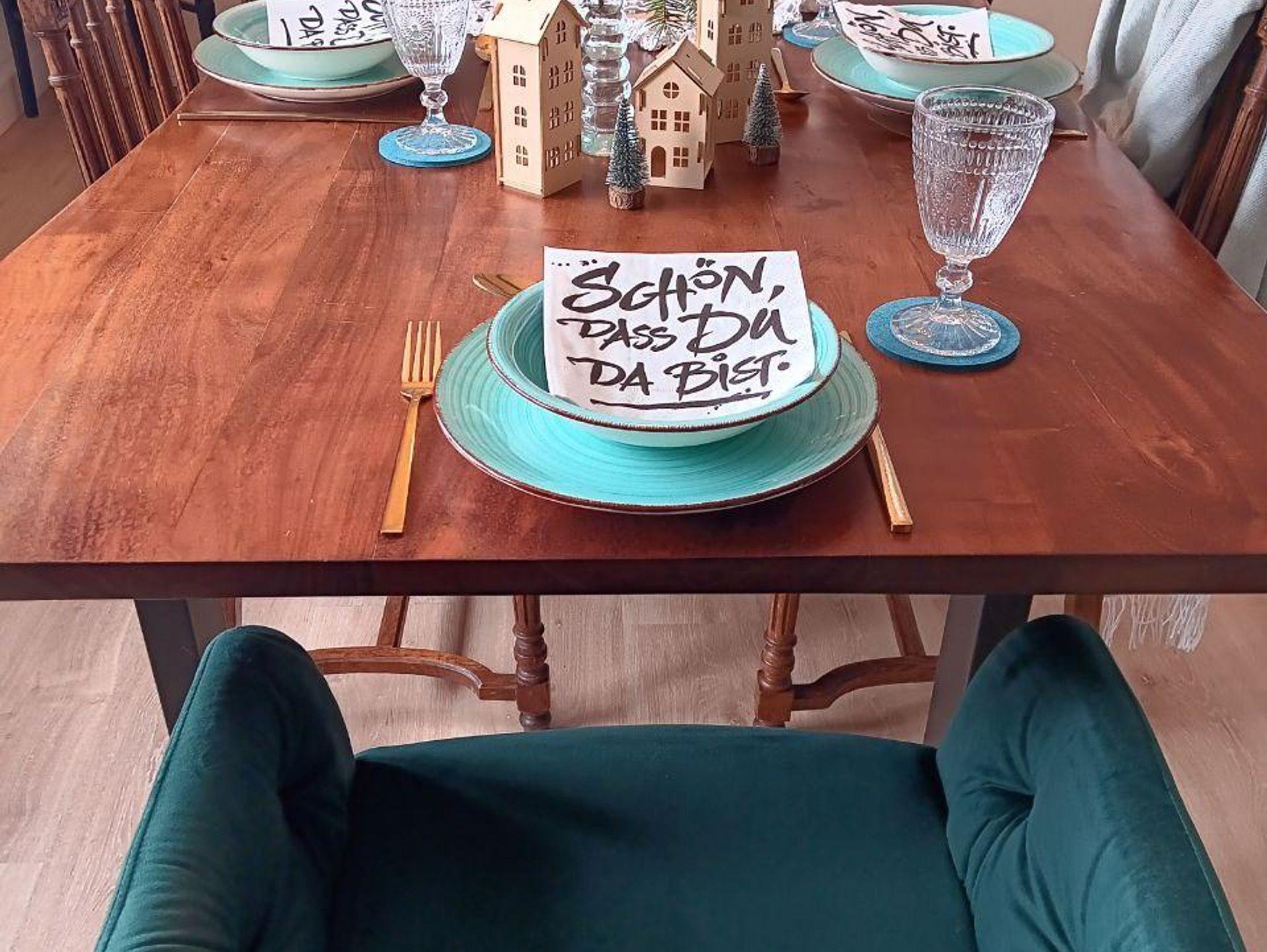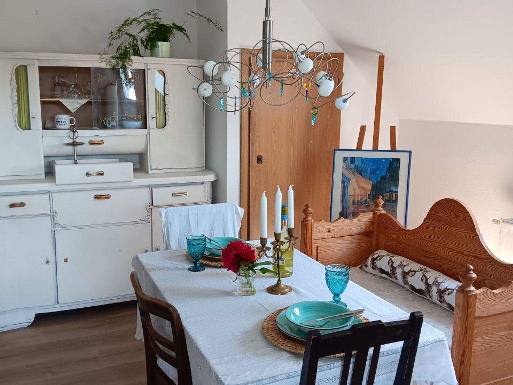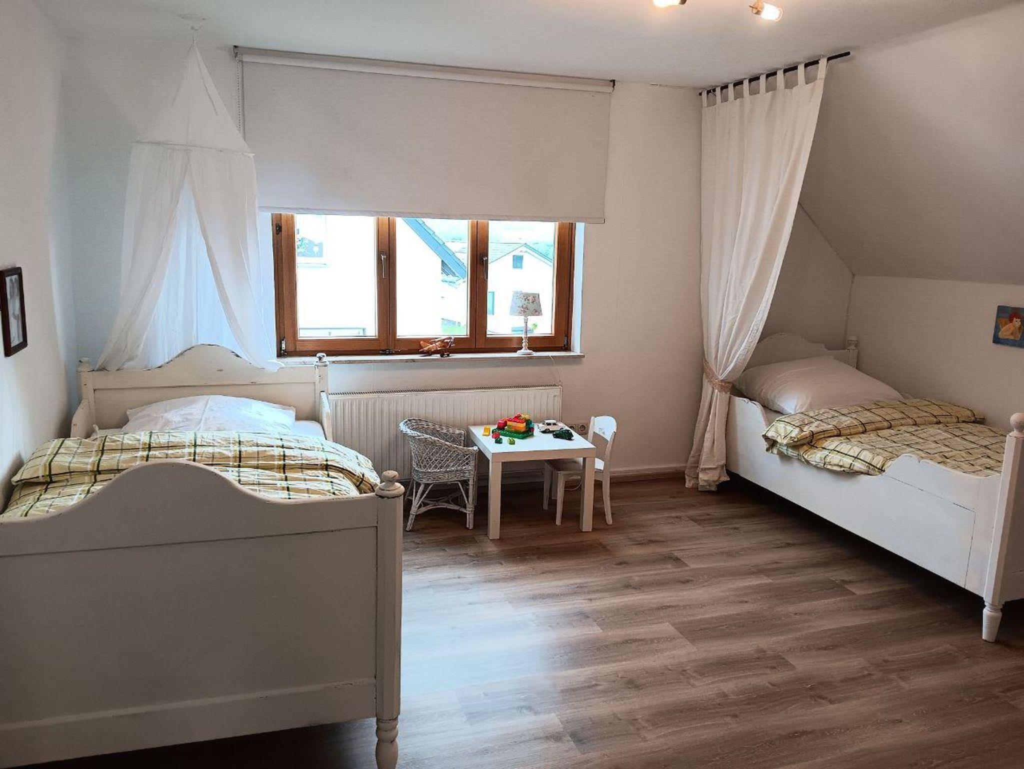 Unsere 110 qm große Ferienwohnung ist mit viel Liebe für´s Detail in einem Mix aus alt & neu eingerichtet. Die lichtdurchflutete Wohnung liegt im 1. Stock und kann bis zu sieben Gäste beherbergen. Die Wohnung setzt sich zusammen aus einem geräumigen Wohn-/ Esszimmer mit großem Esstisch und einer bequemen Dauerschlafcouch, die auch für große Mitmenschen geeignet ist, einer gemütlichen und umfangreich ausgestatteten Küche mit Herd, Backofen, Kühl-/ Gefrierkombi, Geschirrspüler, Wasserkocher, Kaffeemaschine und Toaster, zwei Schlafzimmern (1x mit Doppelbett, 1x mit drei Einzelbetten), einem Flur sowie einem Bad mit WC, Dusche und Badewanne. Ergänzt wird die Wohnung von einer überdachten Loggia, die sowohl vom Wohn-/ Esszimmer als auch von der Küche erreichbar ist und einem großen Garten, der zum Grillen und Entspannen mitbenutzt werden darf. Wäsche waschen, einen Eisvorrat im Gefrierfach anlegen, das Spülen der Spülmaschine überlassen, Baby- Beistellbettchen und Kinderhochstuhl, Spielmöglichkeiten für Kinder- unsere Wohnung ist besonders für Familien mit Kindern optimal und reichhaltig ausgestattet- für alle anderen Gäste aber natürlich auch.
