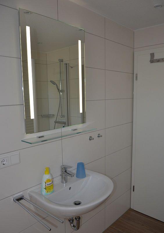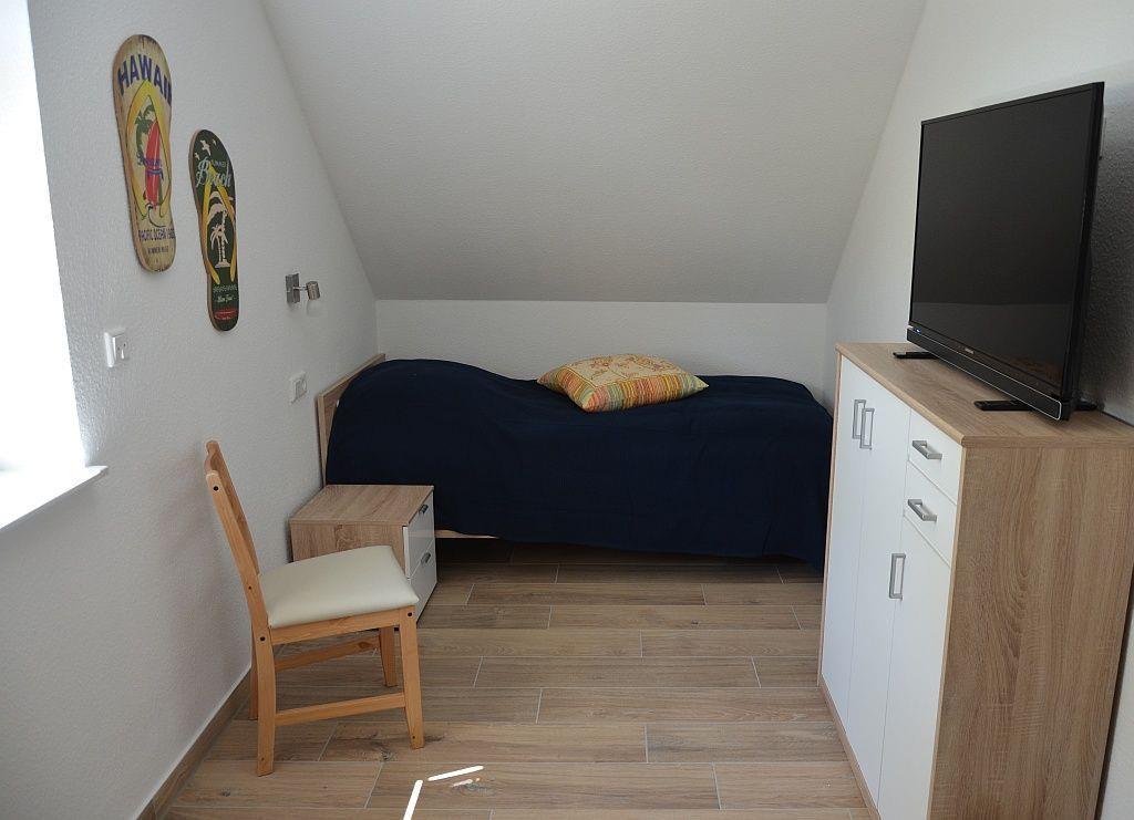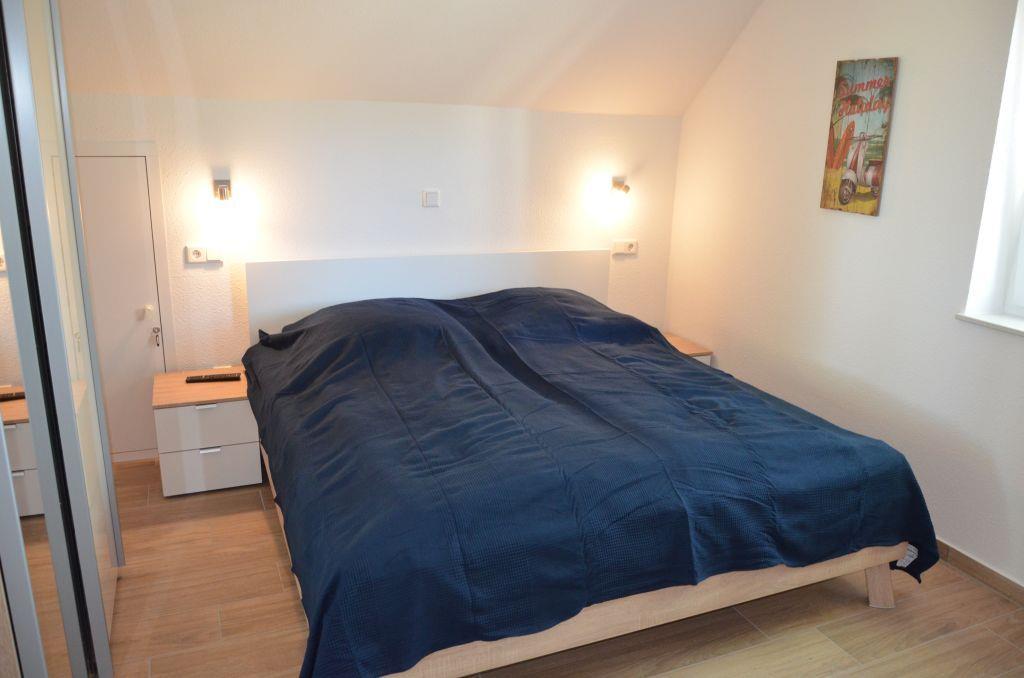 Im Erdgeschoss befindet sich des Weiteren ein Schlafzimmer mit einem Doppelbett mit bequemen Boxspringmatratzen und einem Flach-Bild-Fernseher, sowie ein Badezimmer mit bodentiefer Dusche. Über die Treppe gelangen Sie ins Obergeschoss, hier befinden sich 2 weitere Schlafzimmer (eines mit Doppelbett, das andere mit zwei Einzelbetten) und einem weiteren Duschbad.