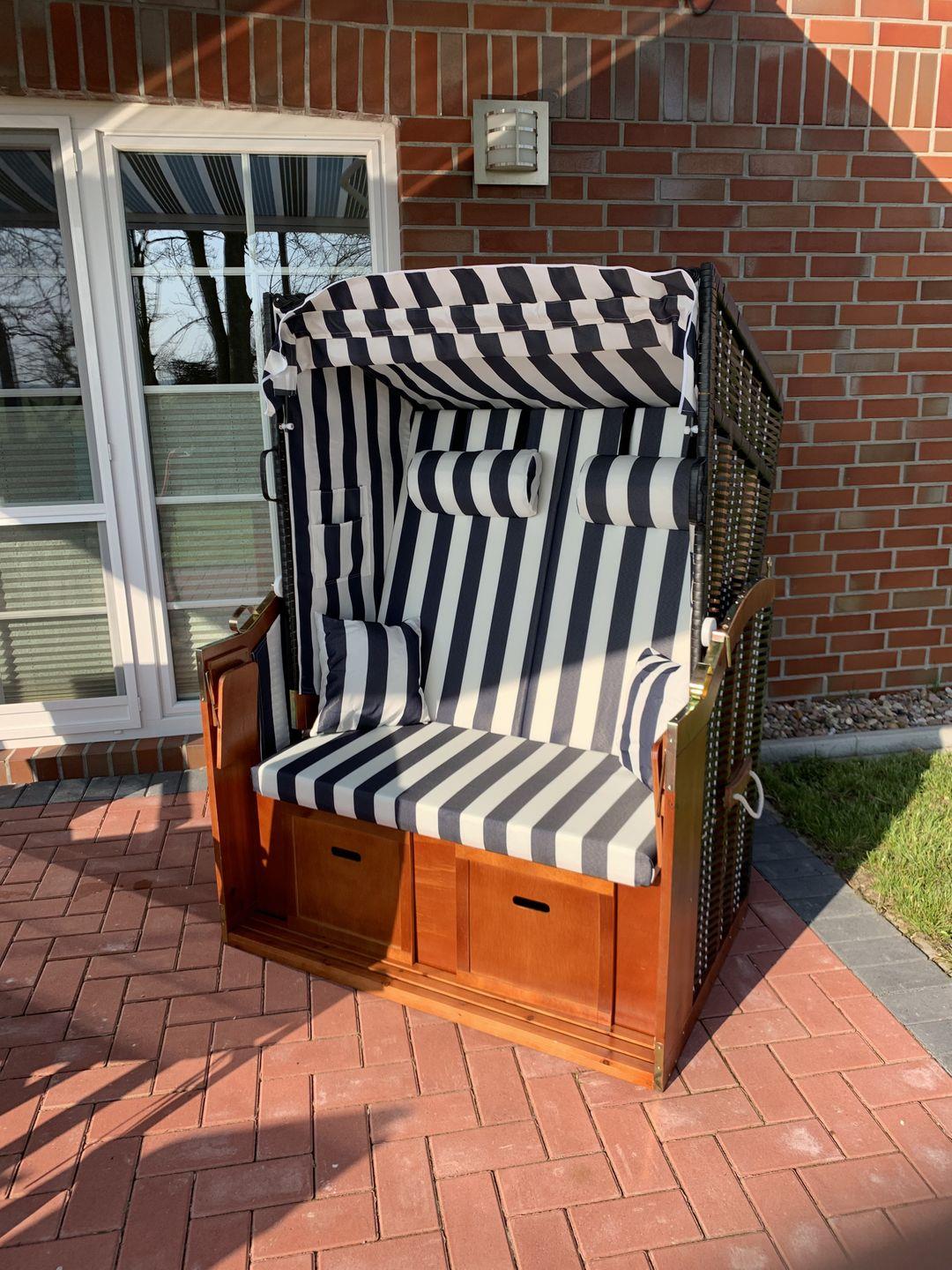 Die Terrasse in Südlage ist möbliert und mit einem Sonnenschirm, Markise und einem gemütlichen Strandkorb ausgestattet. Auch ein Säulengrill und Grillbesteck sind vorhanden. Der Garten ist eingezäunt und im Gartenhaus stehen Ihnen 2 Fahrräder kostenlos zur Verfügung (auf eigene Gefahr und ohne Gewähr für stetige Funktionalität).