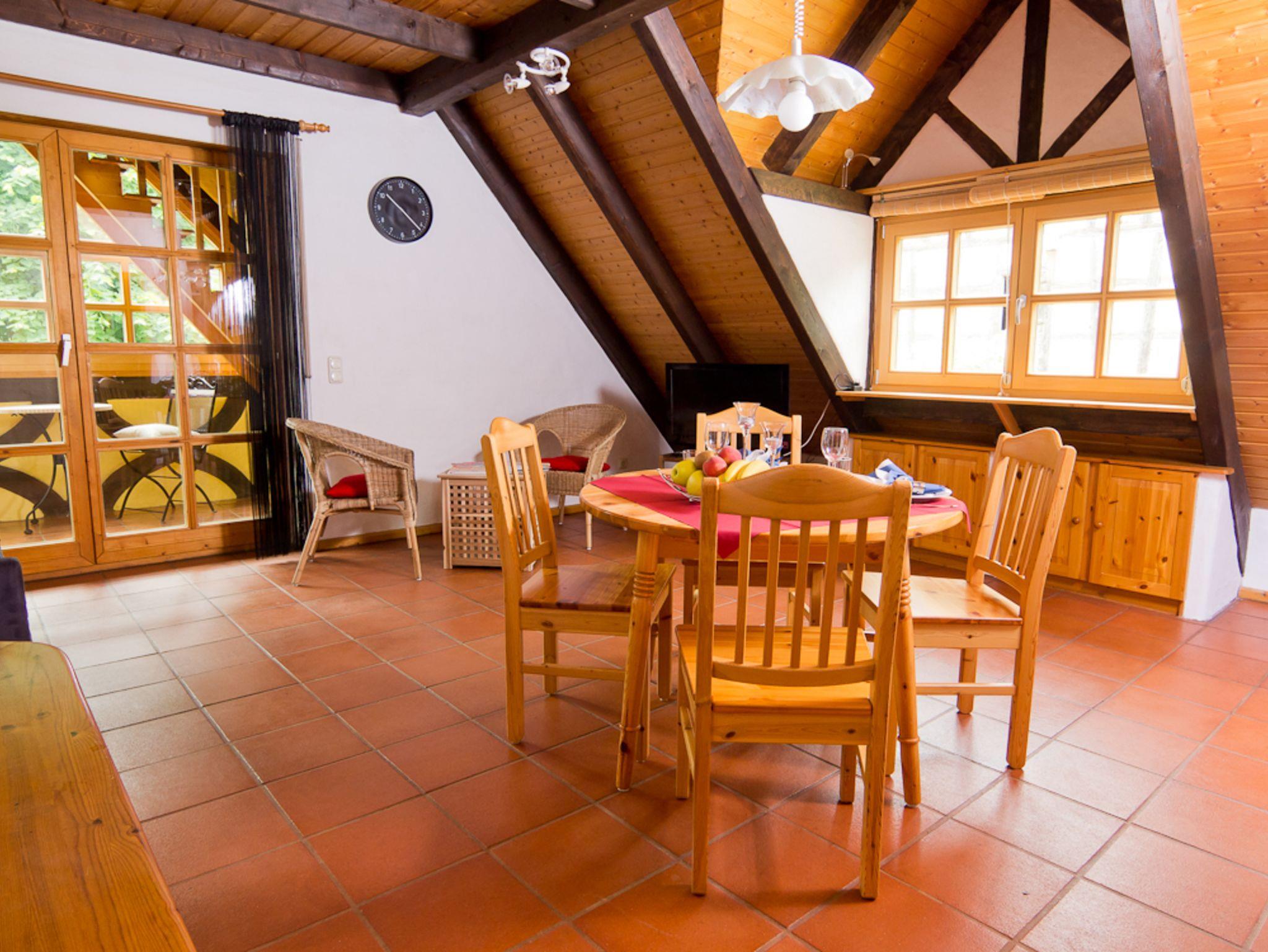 Zwei 4 Sterne-Ferienwohnungen. Ein idyllisches und ruhig gelegenes Dorf in der Fränkische Schweiz, umgeben von Wäldern und Feldern, am Fuße der Kletterfelsen Drei Zinnen.