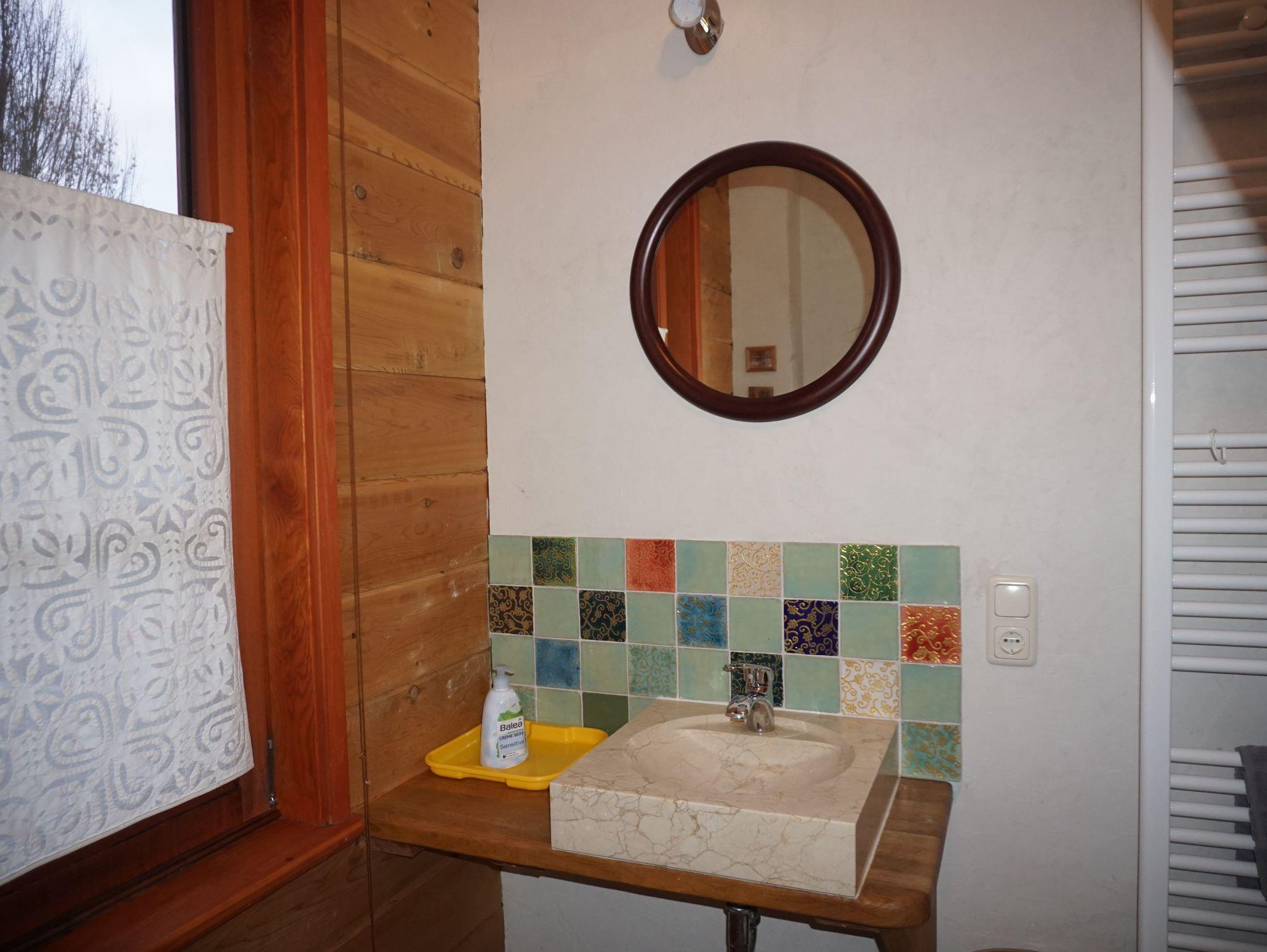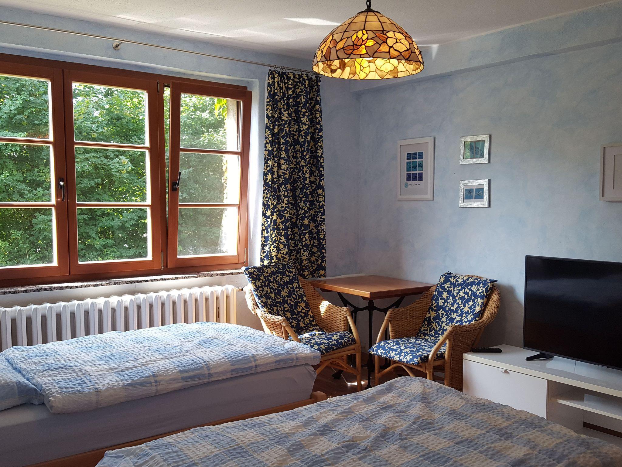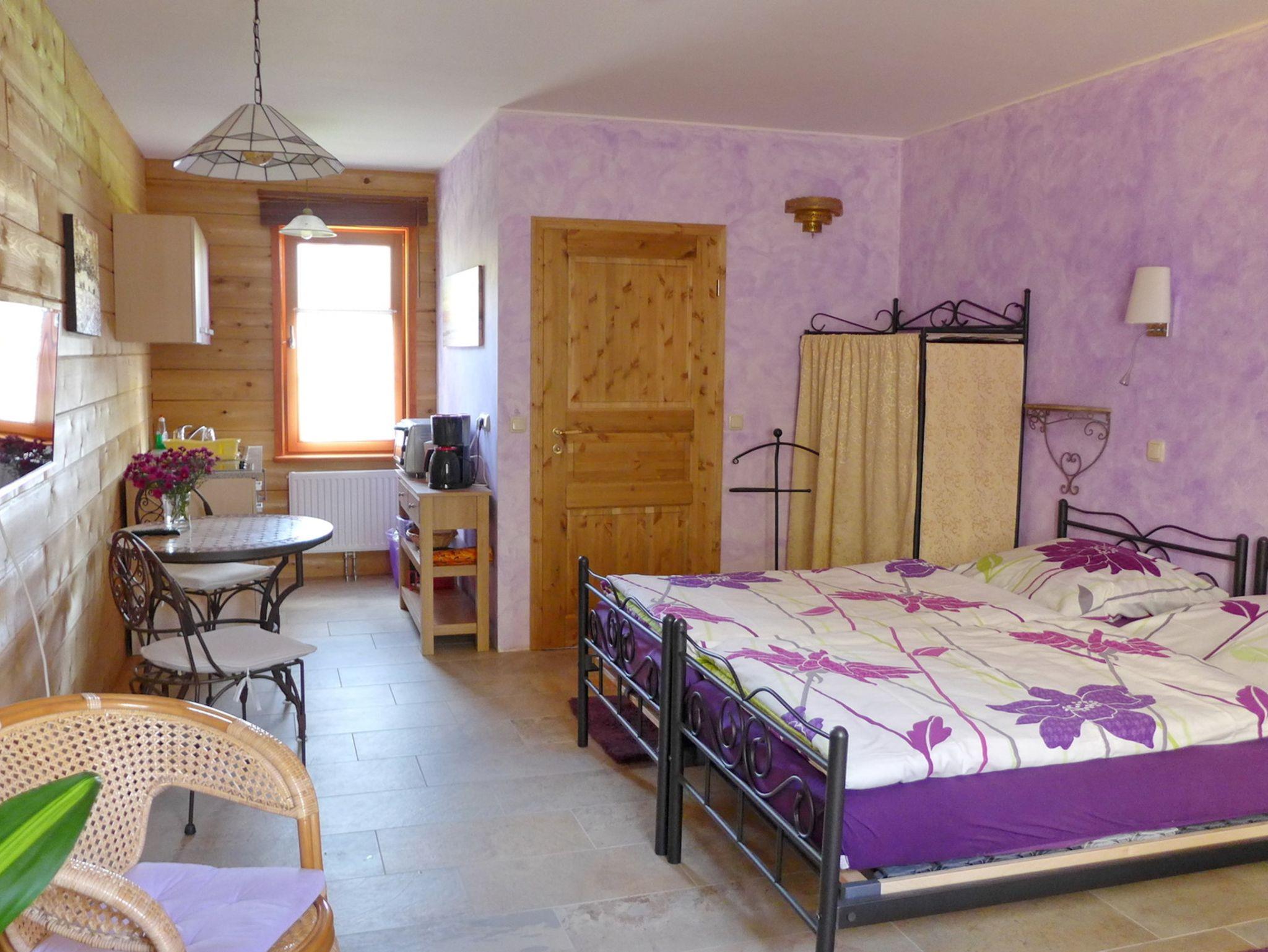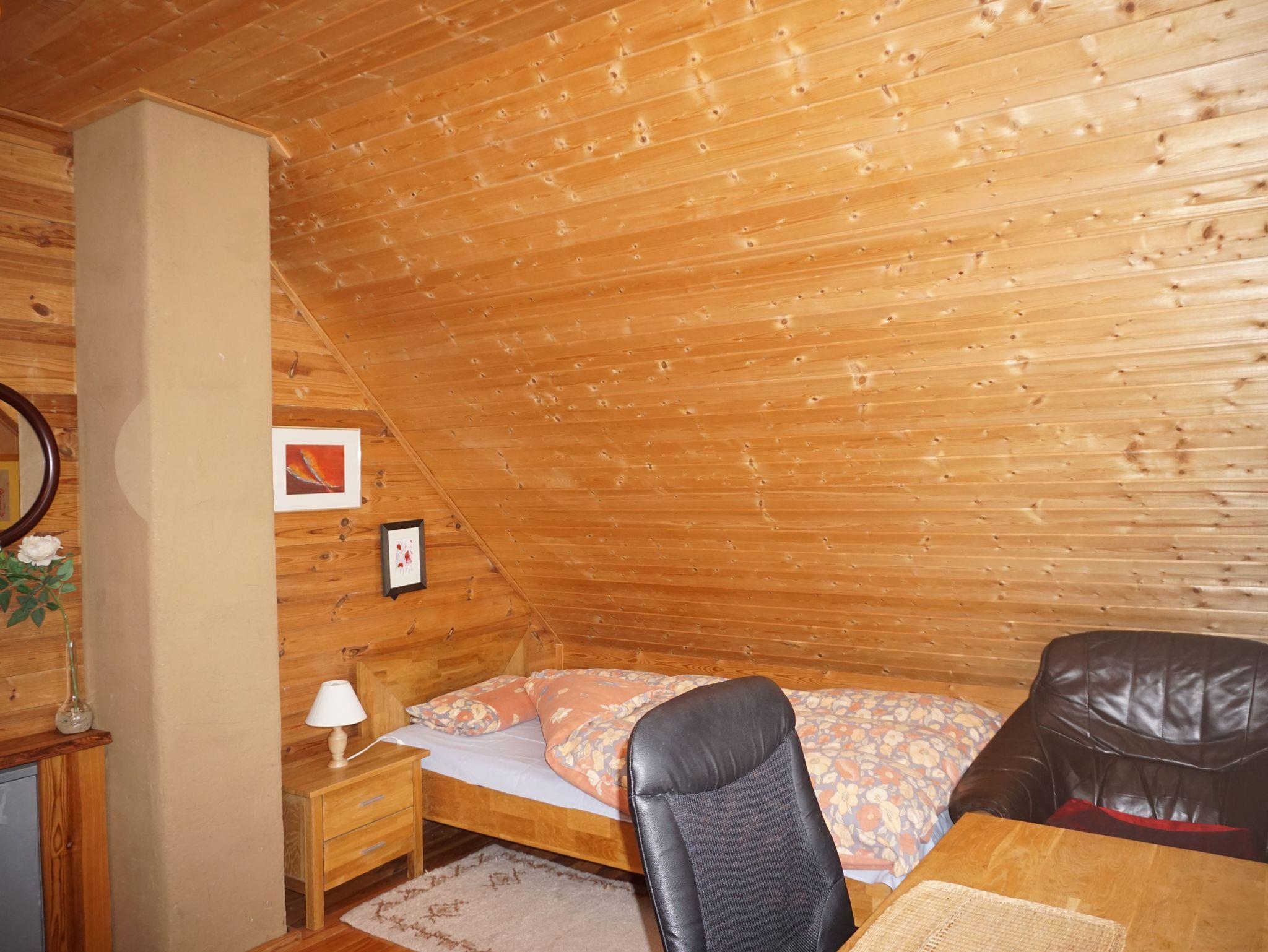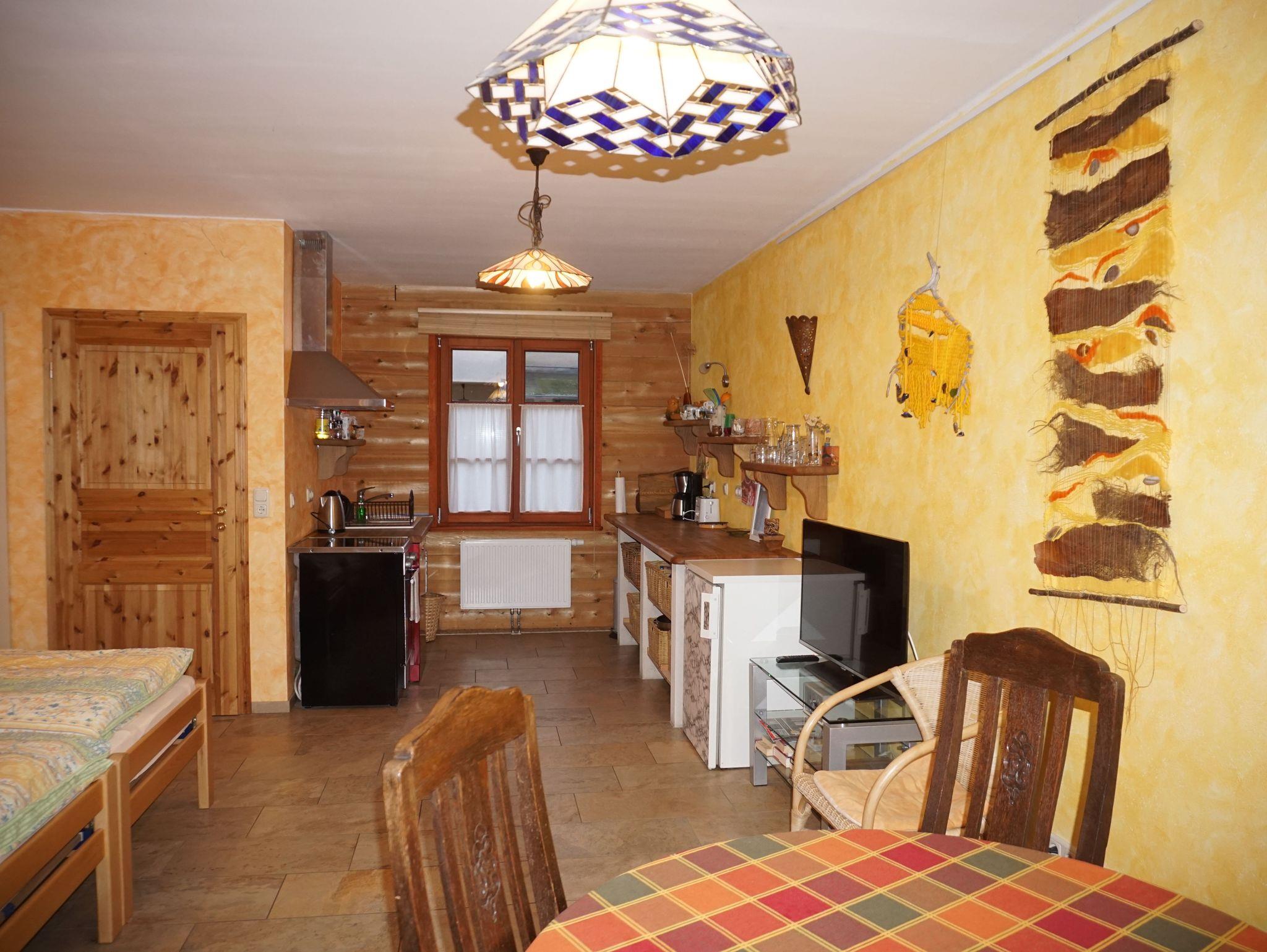 Das Zweibettzimmer Anna befindet sich im Zedernblockhaus (Baujahr 2006). Eingerichtet ist es mit zwei Einzelbetten, die je nach Bedarf beisammen oder getrennt stehen können, einer Sitzecke, einem Esstisch mit Stühlen und einem Flachbildfernseher. Eine Miniküche mit Kühlschrank, 2 Cerankochfeldern, Wasserkocher, Kaffeemaschine, Toaster und Minibackofen ist ebenfalls integriert. Das Bad ist mit ebenerdiger Dusche und Duschvorhang, Waschtisch und WC ausgestattet. Ein Reisekinderbett (10,- Euro) und ein Kinderhochstuhl (3,- Euro) wird Ihnen auf Anfrage zur Verfügung gestellt.
