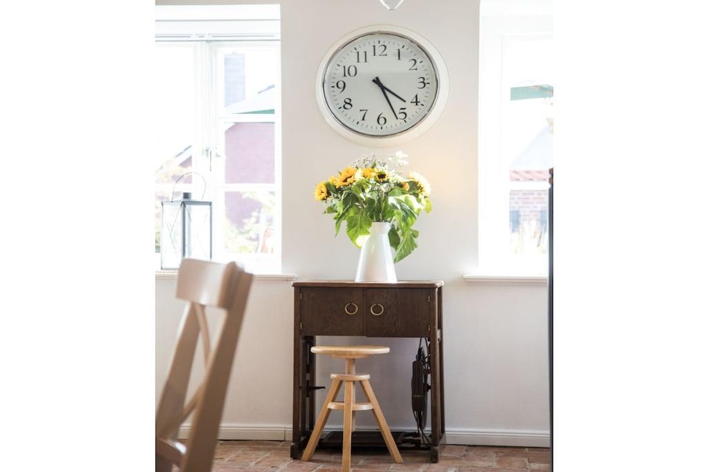 Urlaub im Denkmal mit vollem Wohnkomfort!Das bietet das Ferienhaus Alte Bäckerei, das wir mit viel Liebe zum Detail in den ursprünglichen Zustand von 1803 zurückgebaut haben. Die voll ausgestattete Küche mit gemütlichem Essplatz lädt zu ausgedehnten Kochabenden ein. Eine kuschelige Sofaecke und der Kamin sorgen für schönes und erholsames Ambiente auch bei schlechterem Wetter. Für unsere kleinen Gäste stellen wir gerne kostenlos einen Hochstuhl und ein Reisebettchen zur Verfügung. Auch befindet sich im Ferienhaus eine kleine Auswahl an Kinderspielzeug. Das gesamte Erdgeschoss ist mit einer Fußbodenheizung ausgestattet, die für angenehmes Raumklima sorgt. Draußen erwartet Sie eine schön möblierte Terrasse mit angrenzendem großen Garten.