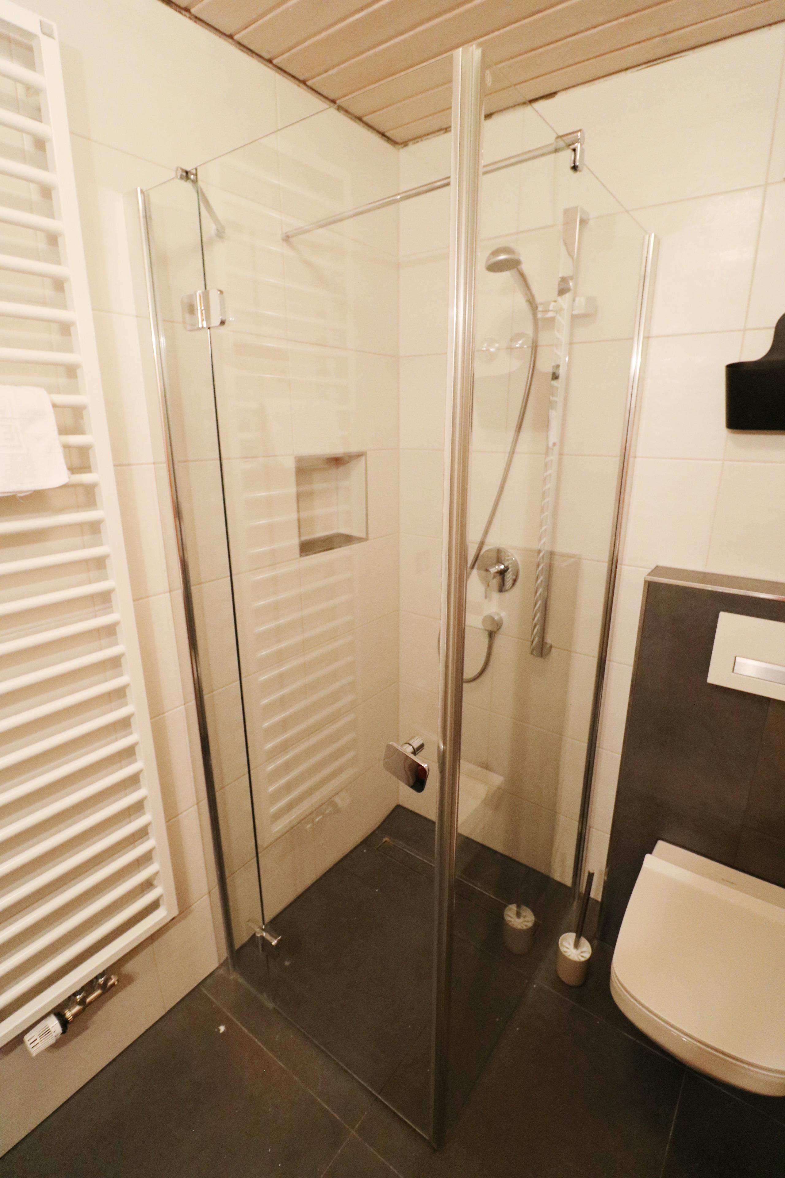 - 1 Badezimmer mit Dusche, Waschbecken und WC