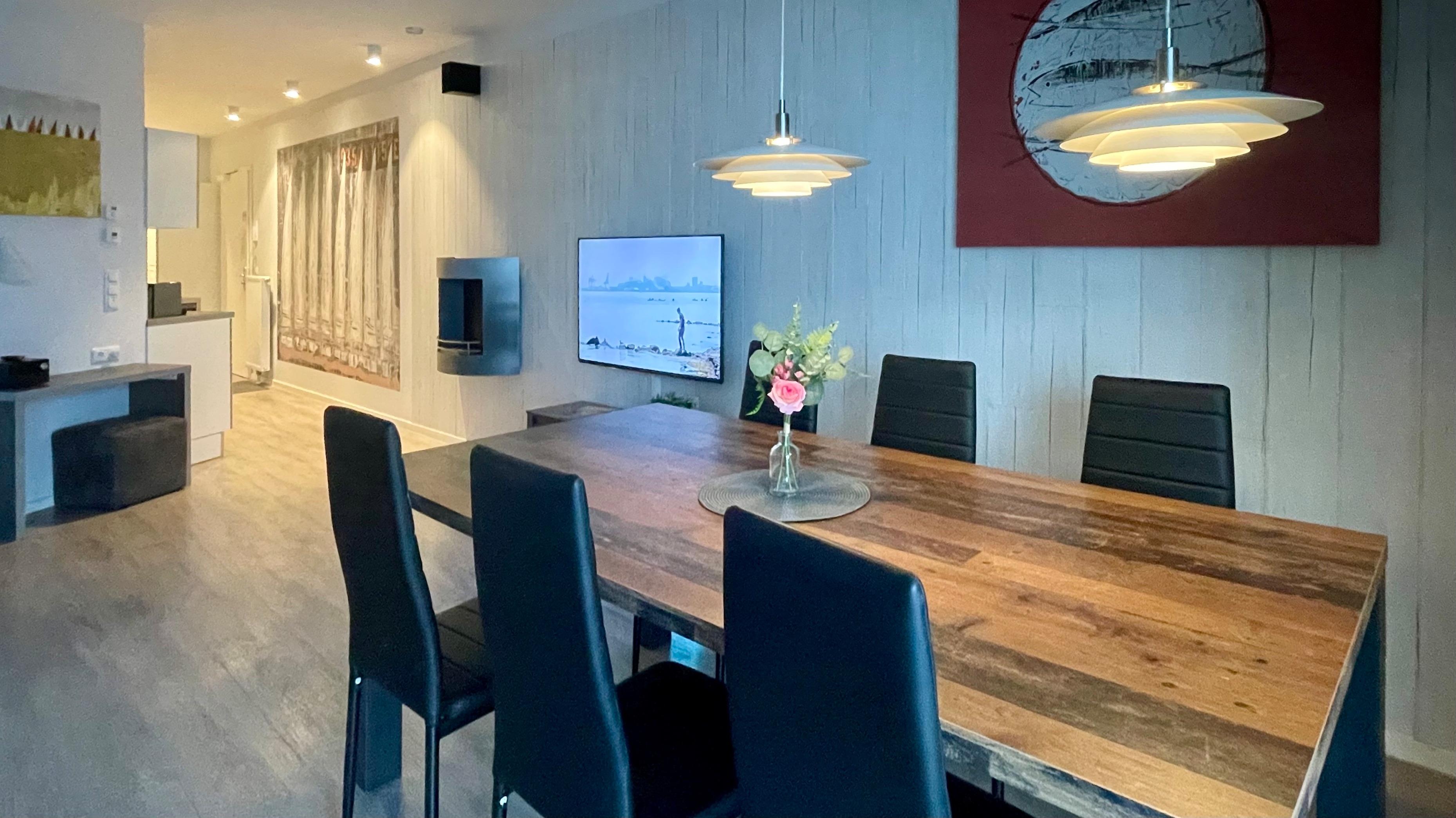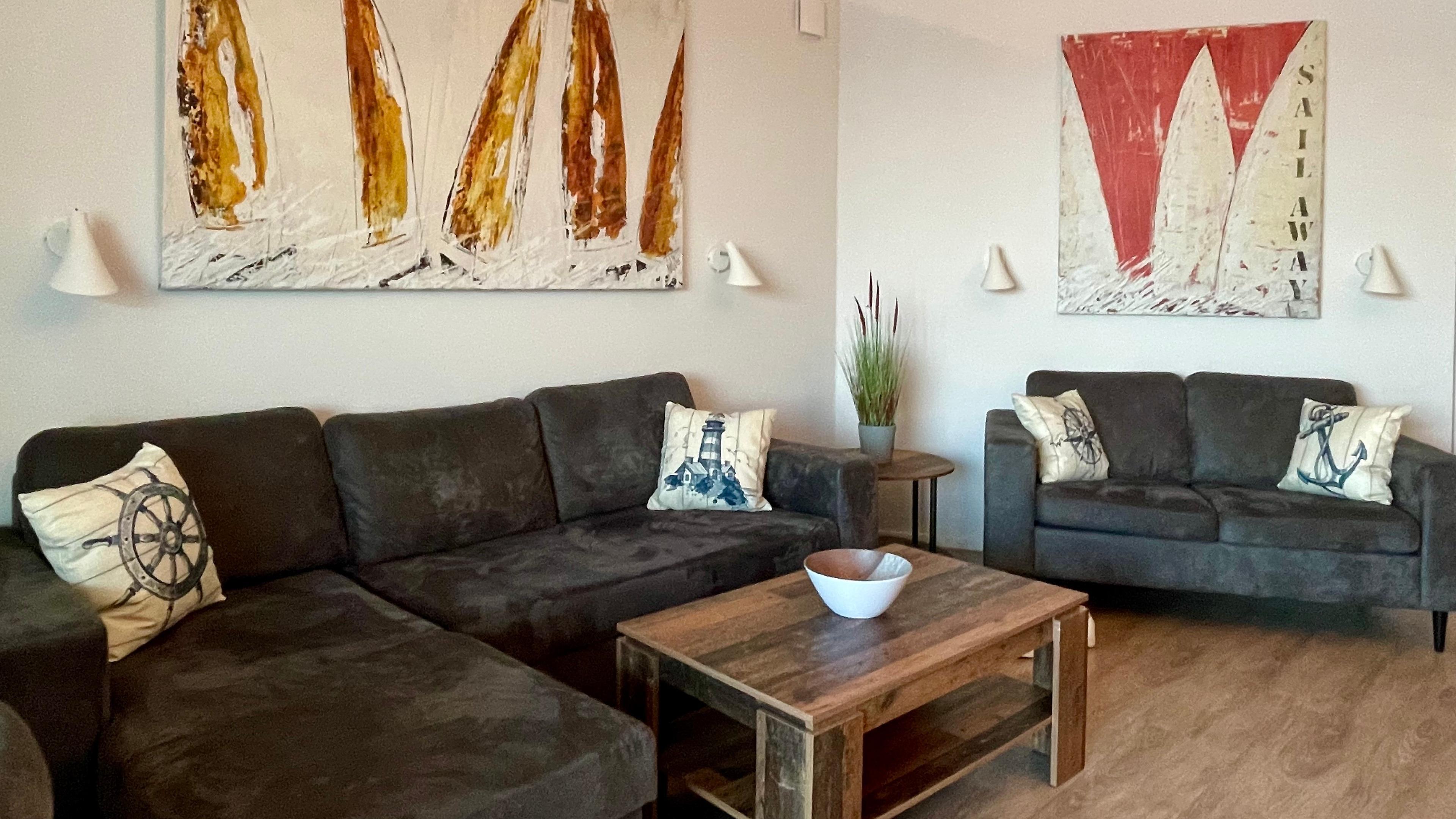 Die Wohnung wurde 2025 renoviert und neu möbiliert. Ein besonderes Highlight ist ihr persönlicher Wellnessbereich mit Sauna, Whirlpool und Dampfbad mit integrierter Doppel-Regendusche. Im Wohnbereich sorgen am Abend die Flammen des Bioethanolkamins für eine gemütliche Atmosphäre, ebenso wie die vorbeifahrenden großen Schiffe mit ihrer eindrucksvollen nächtlichen Beleuchtung.