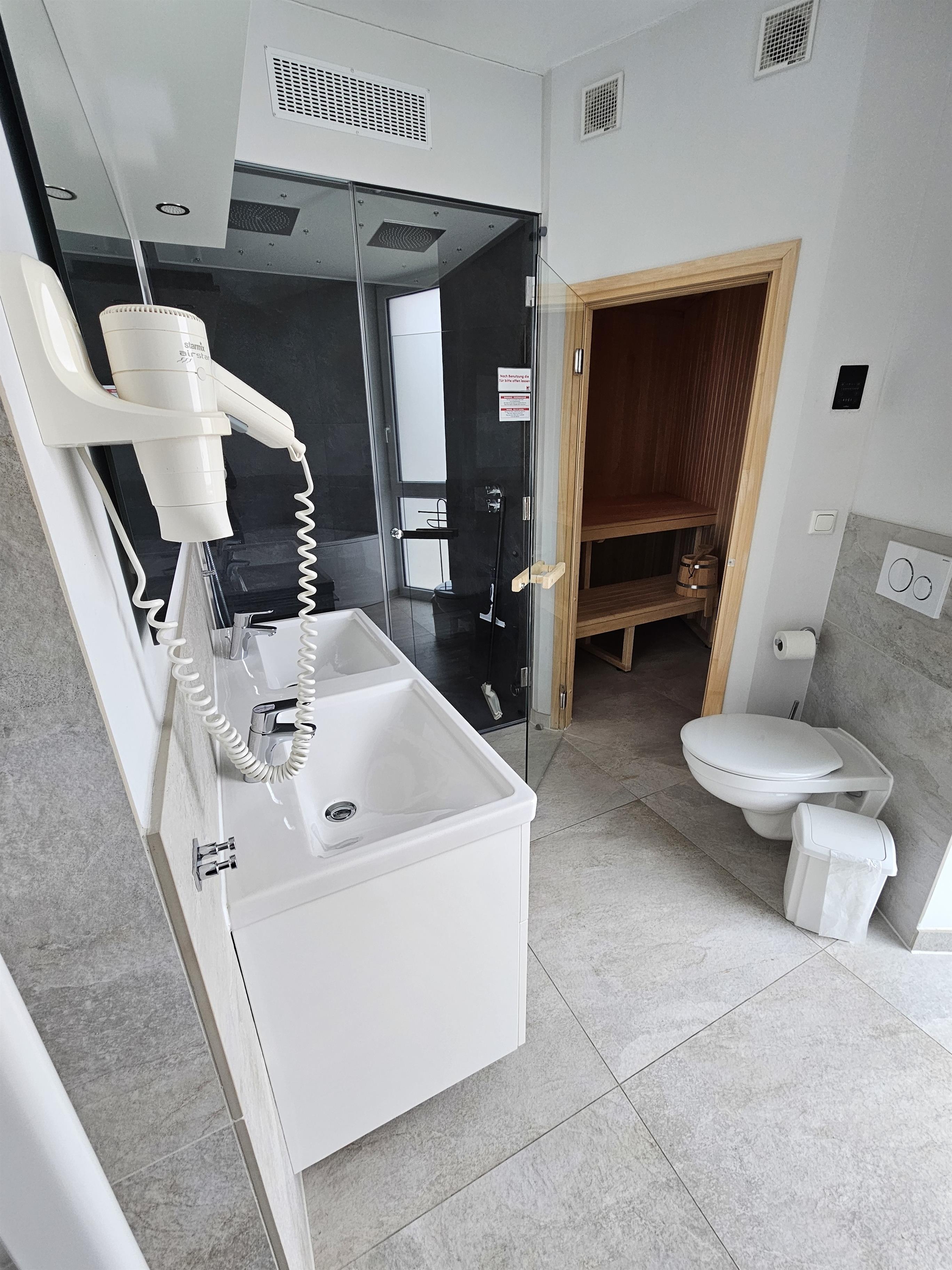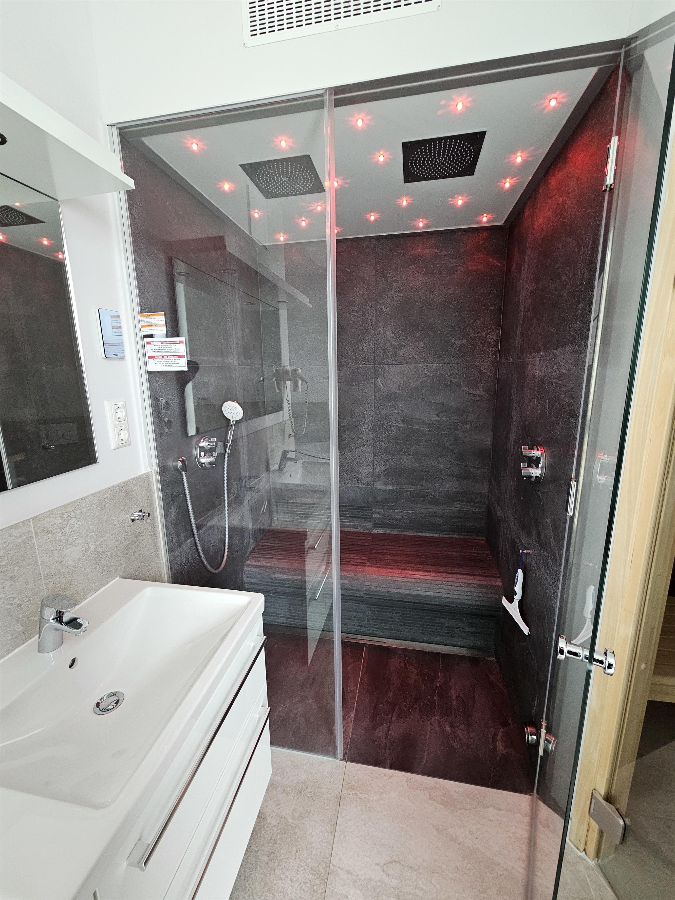 Die Wohnung ist stilvoll, hochwertig und modern eingerichtet. Ein besonderes Highlight ist ihr persönlicher Wellnessbereich mit Sauna, Whirlpool und Dampfbad mit integrierter Doppel-