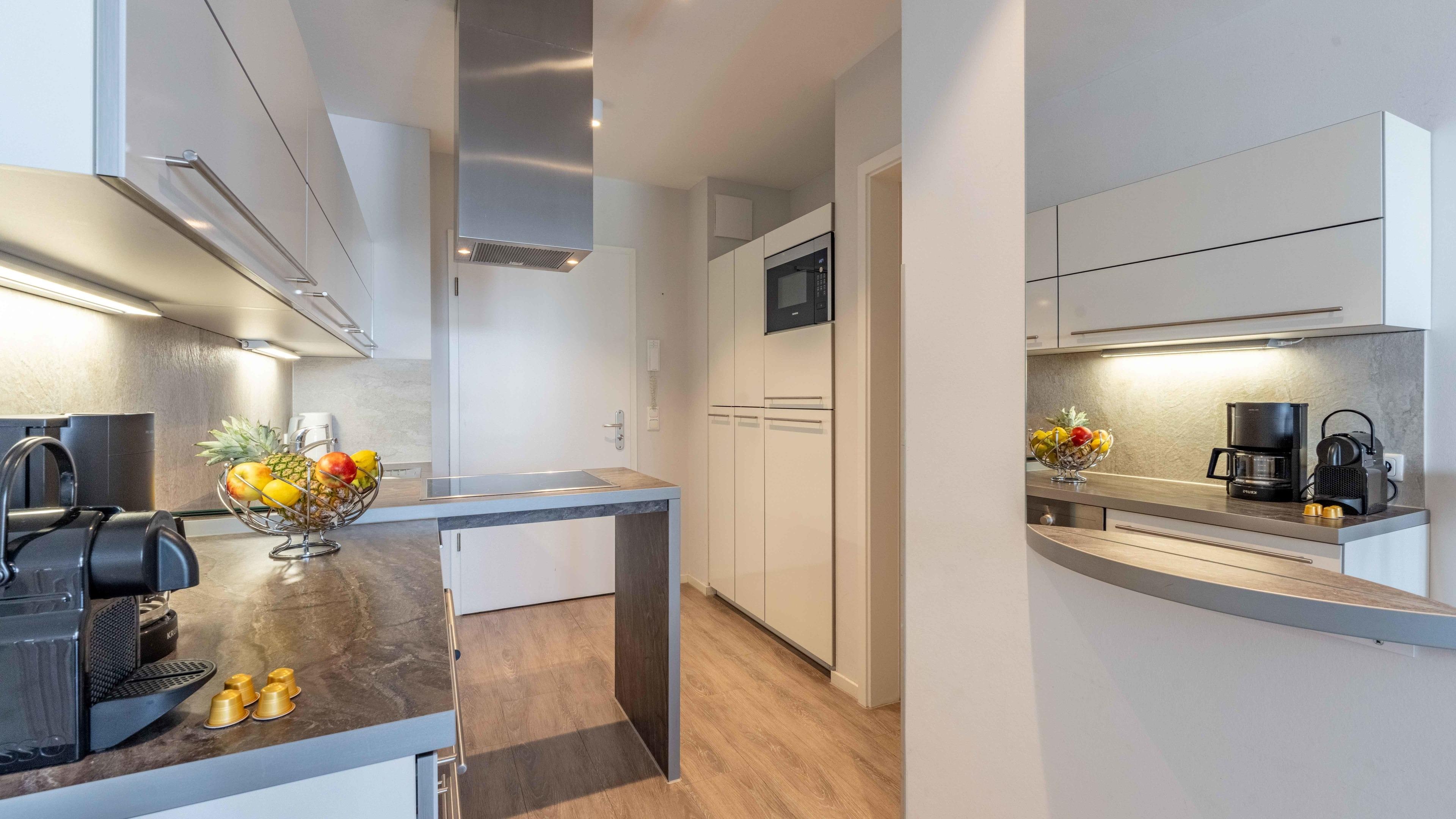 Die Wohnung ist stilvoll, hochwertig und modern eingerichtet. Ein besonderes Highlight ist ihr persönlicher Wellnessbereich mit Sauna, Whirlpool und Dampfbad mit integrierter Doppel-