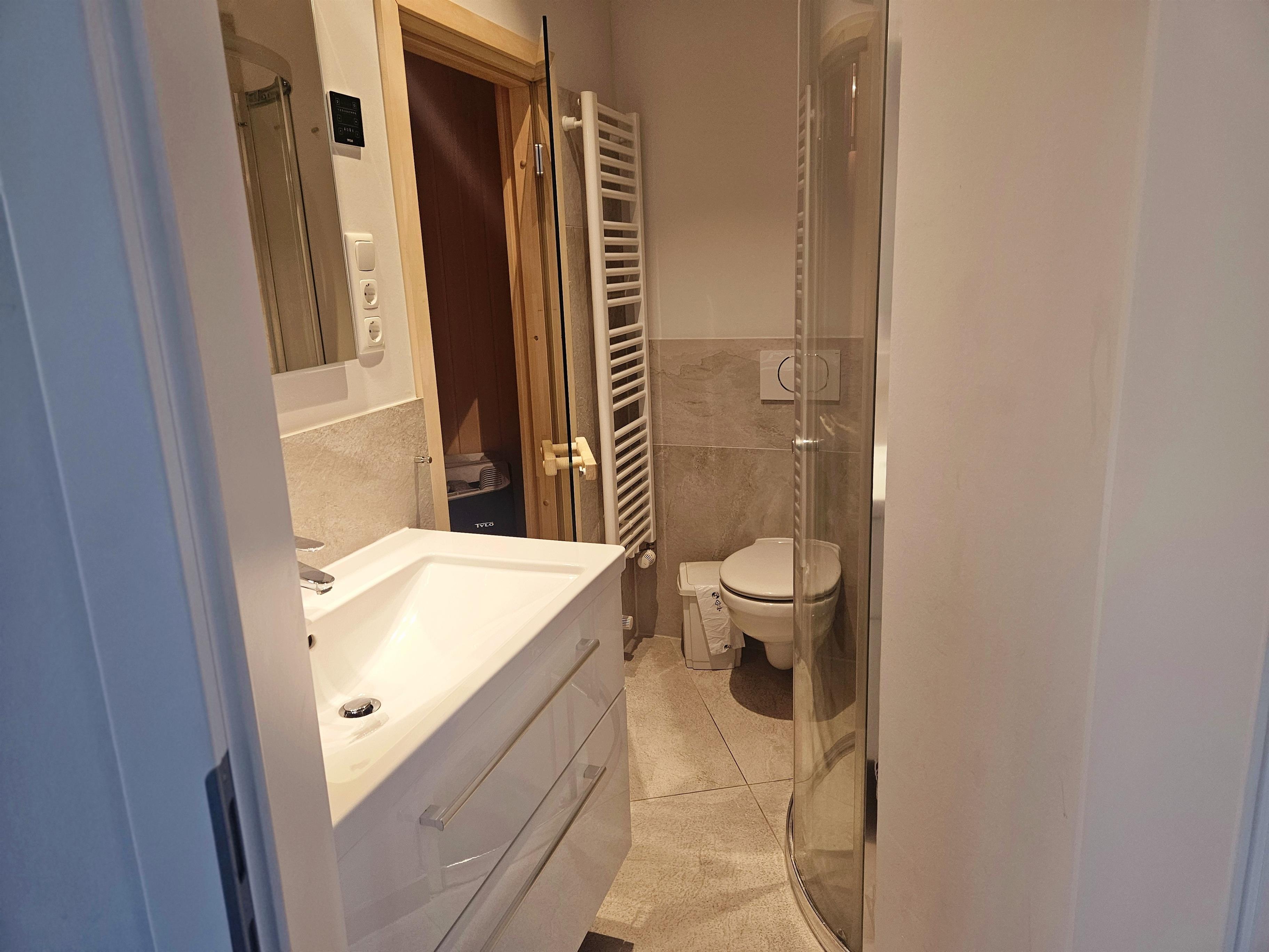 Die Wohnung ist stilvoll, hochwertig und modern eingerichtet. Ein besonderes Highlight ist ihr persönlicher Wellnessbereich mit Sauna, Whirlpool und Dampfbad mit integrierter Doppel-