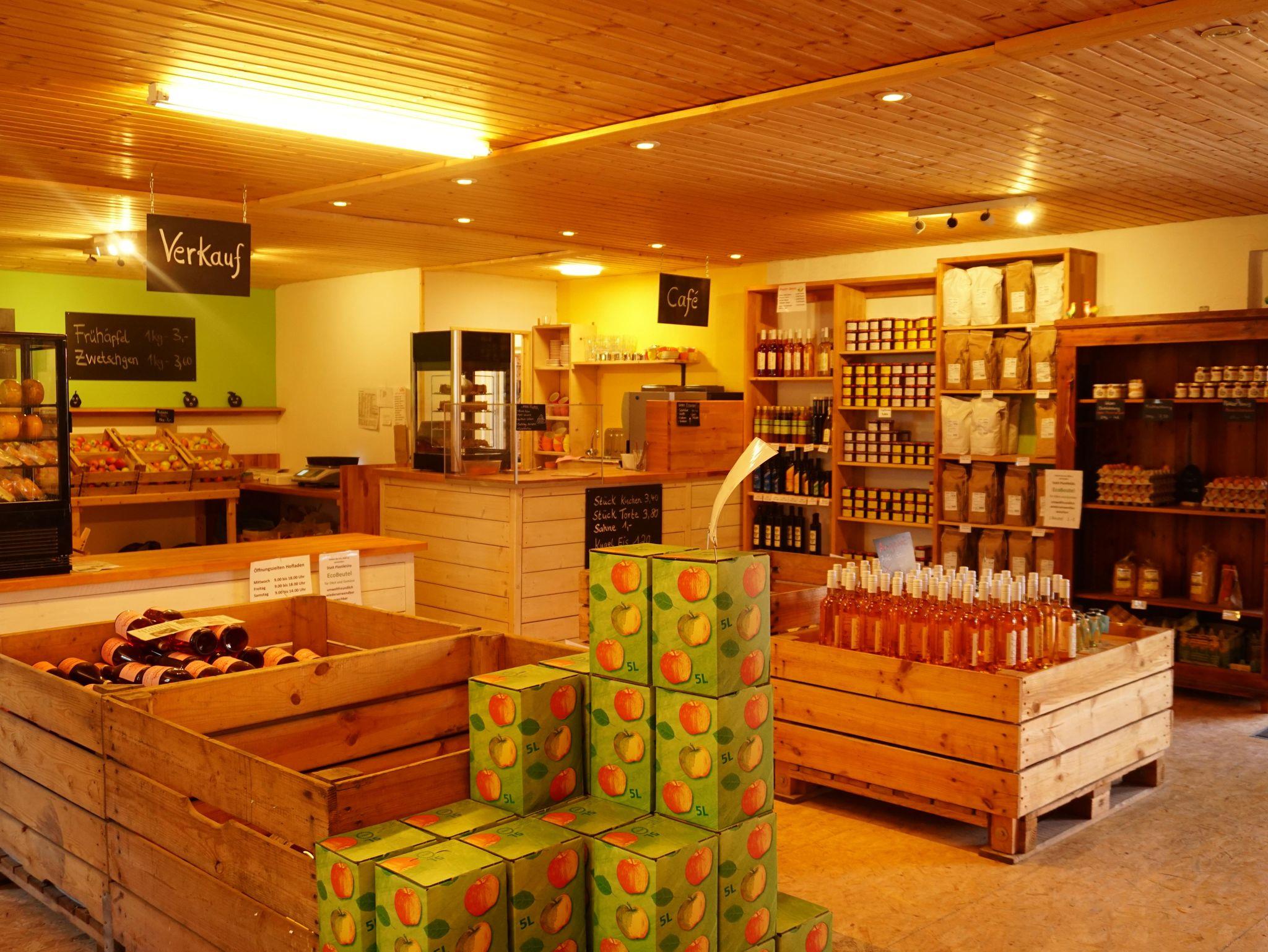 Du wohnst direkt dort, wo unser Obst wächst – erlebst die Jahreszeiten hautnah und kannst in unserem Hofladen regionale Produkte kaufen oder im angrenzenden Hofcafé Kaffee und Kuchen genießen. Je nach Saison erwarten dich frische Äpfel, Pfirsiche, Zwetschgen oder Beeren.