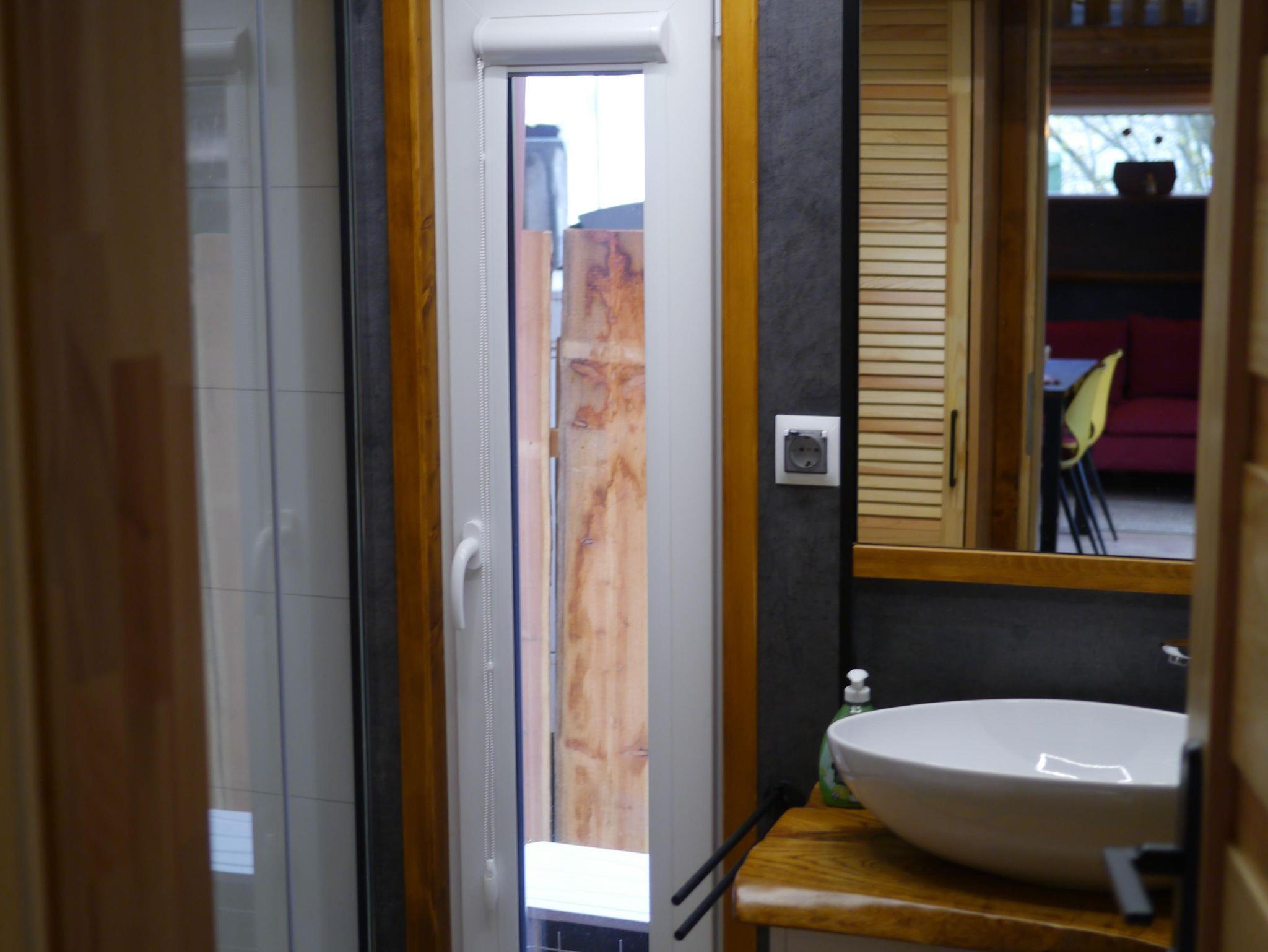 Das Tiny House fügt sich harmonisch in den schönen hinteren Teil unseres Gartens ein, wo sie sich ungestört zurückziehen können.