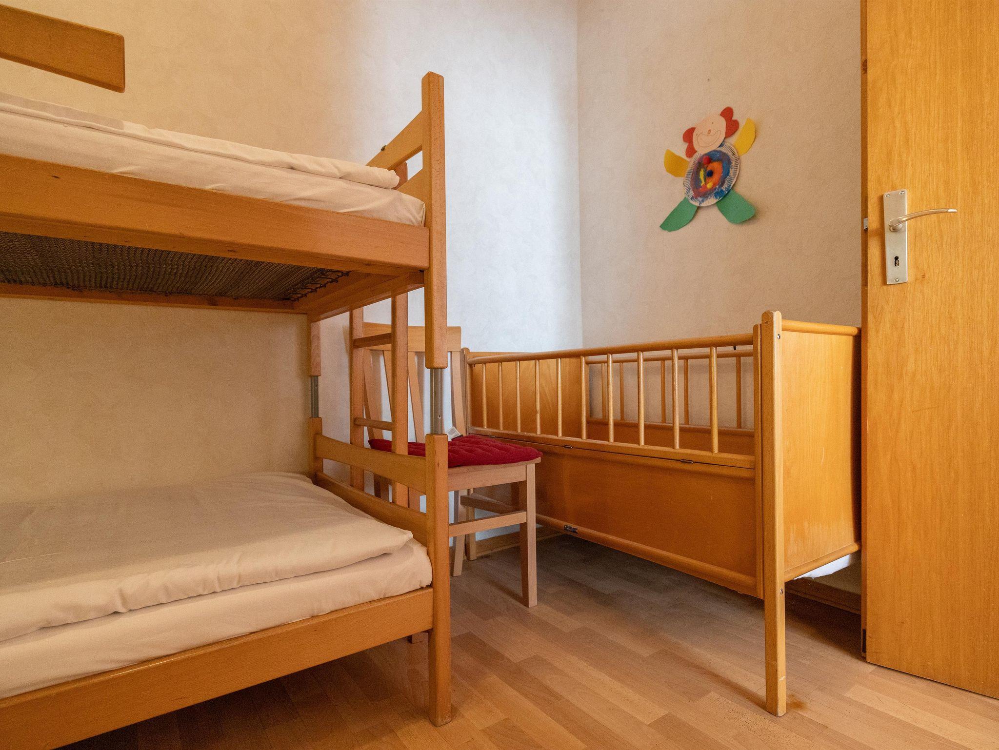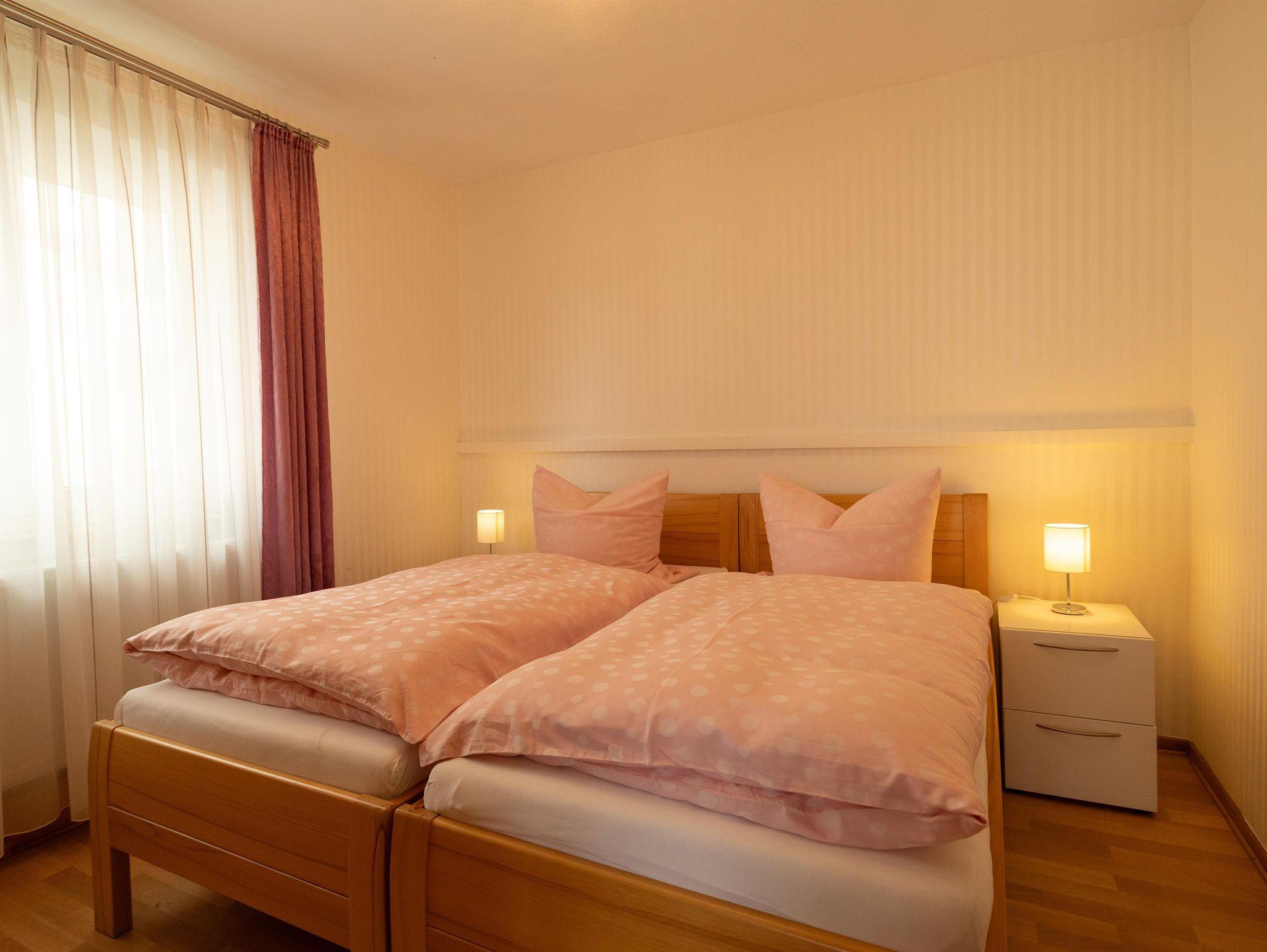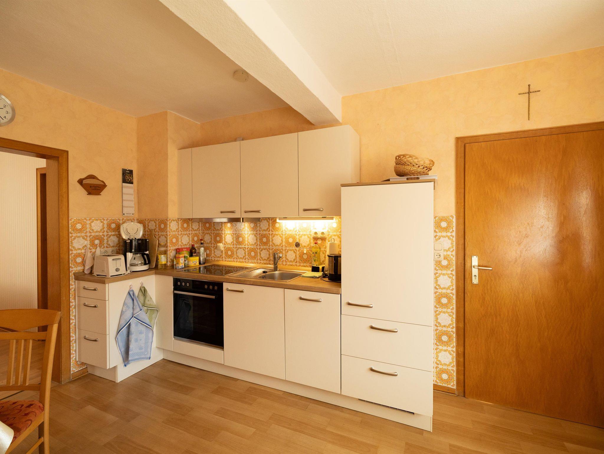 Gemütliche 55 m² große Erdgeschosswohnung im Fachwerkferienhaus – ideal für zwei Erwachsene und zwei Kinder. Die rustikal eingerichtete Wohnung verfügt über zwei Zimmer, Küche und Bad. In der Wohnküche befindet sich ein großer ausziehbarer Esstisch, Flat-TV sowie alles, was man braucht: Kaffeemaschine, Toaster, Wasserkocher, Haarfön und Kinderstuhl. Das Schlafzimmer bietet ein Doppelbett, das Kinderzimmer ein 1,80 m langes Stockbett. Der Sanitärbereich umfasst Duschkabine, Waschbecken und WC. Bettwäsche, Geschirr- und Handtücher, WLAN und Endreinigung sind inklusive.