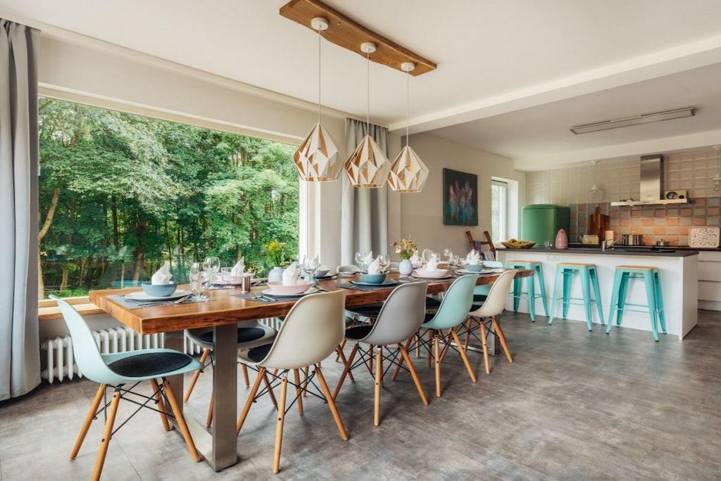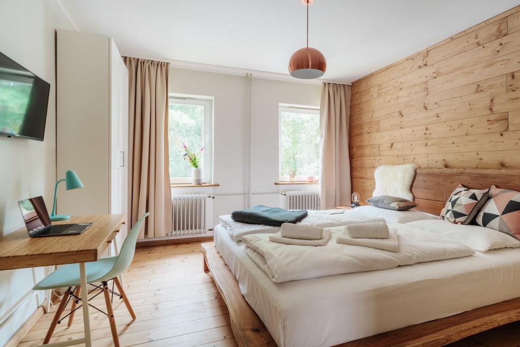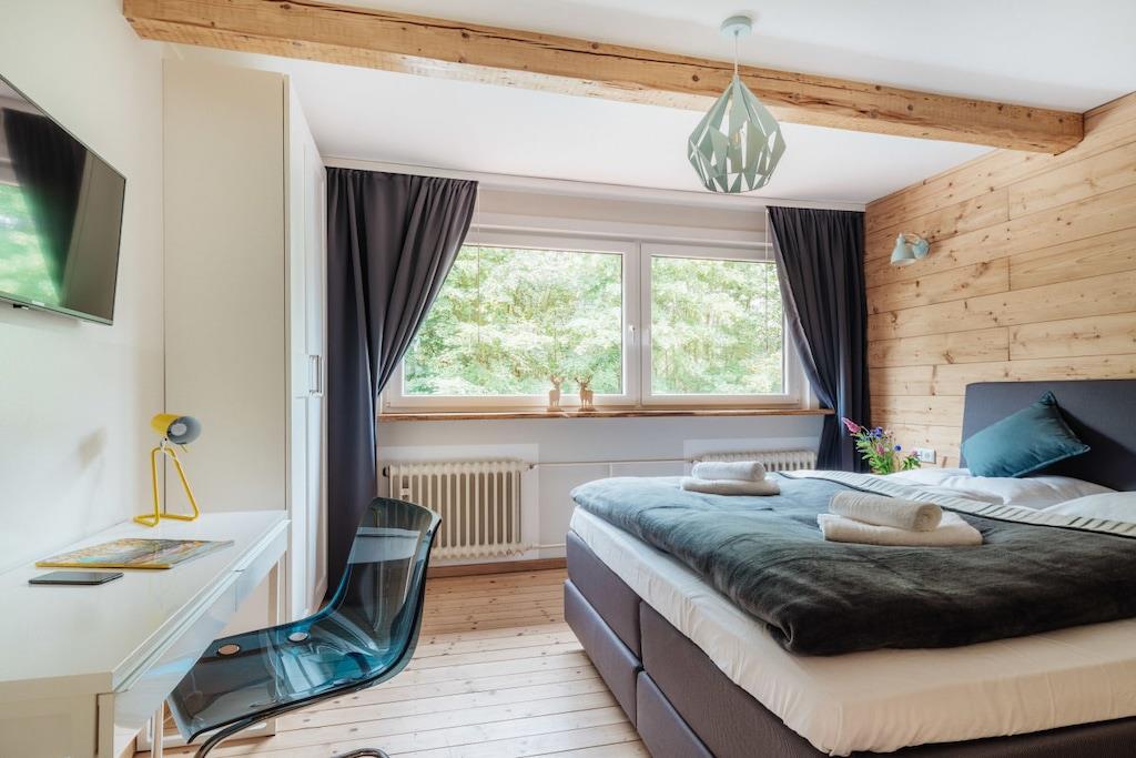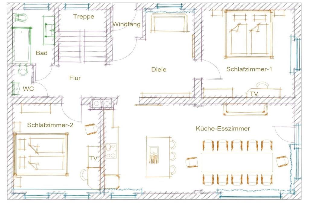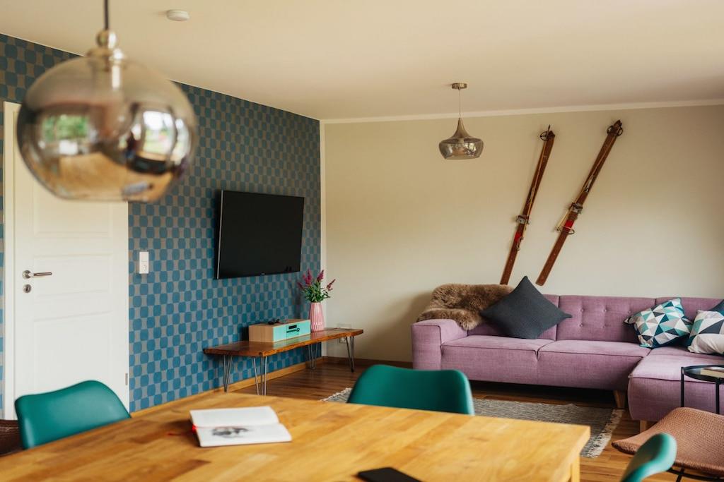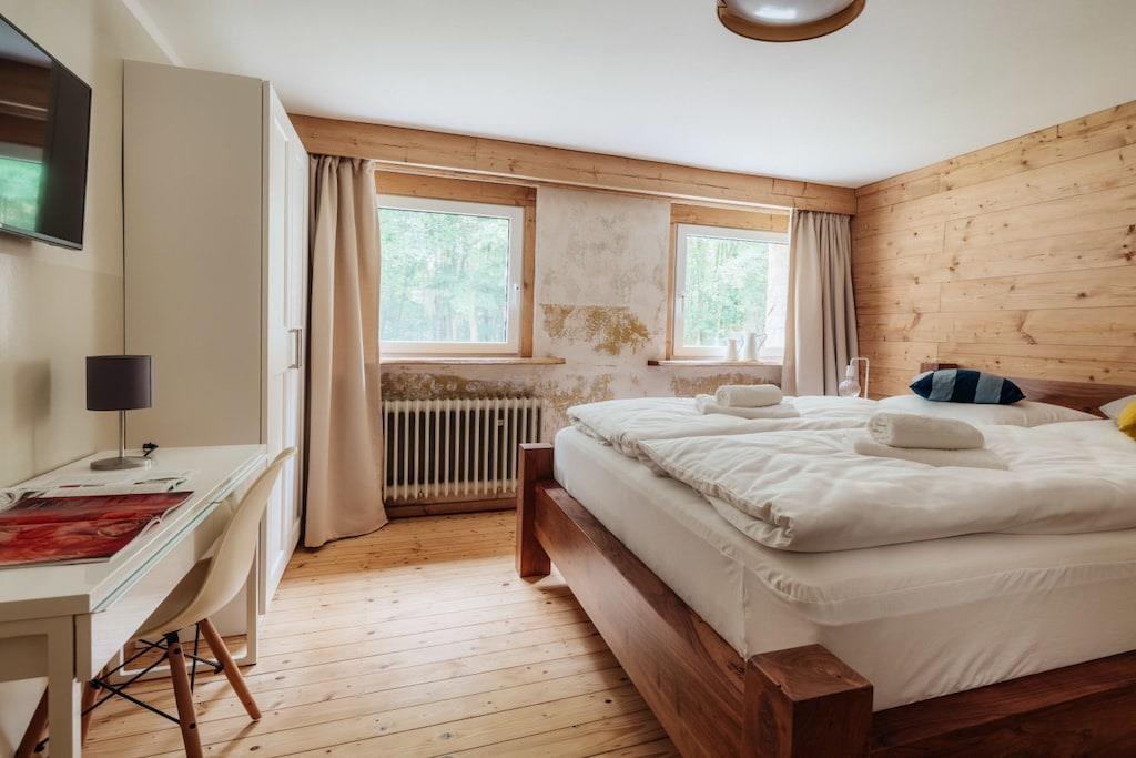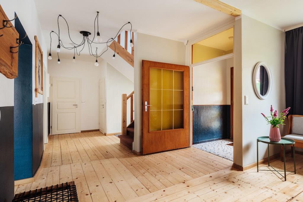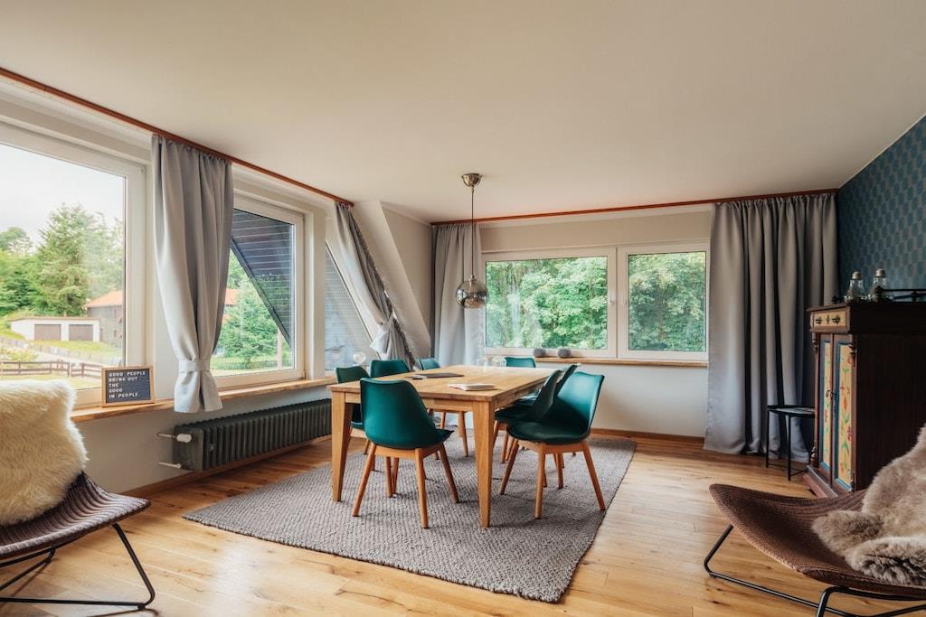 Wohnen und Essen Der große Tisch in der 33qm großen Wohnküche im Erdgeschoss lädt zum gemütlichen Zusammensitzen auch außerhalb der Mahlzeiten ein. Im Obergeschoss finden Sie ein komplett ausgestattetes Wohnzimmer mit einem großen Flachbildfernseher. Die Nutzung des WLAN ist für Sie gratis. Die Schlafzimmer Die beiden Schlafzimmer im EG sind etwa 15qm groß und jeweils mit einem komfortablen Boxspringdoppelbett/Doppelbett ausgestattet. Im Untergeschoss befindet sich ein weiteres gemütliches Schlafzimmer mit einem großen Doppelbett. Drei weitere Schlafräume finden Sie im OG vor- eines mit einem großen Boxspringdoppelbett, eines mit einem Doppelbett und im kleinen Schlafzimmer ein großes Einzelbett (140x200cm). In allen Schlafzimmern ist ein Smart-TV (32 Zoll) angebracht. In der modernen offenen Küche im EG, die direkt mit dem Essbereich verbunden ist, werden Sie viel Freude am gemeinsamen Kochen und Zusammensitzen haben. Neben dem Cerankochfeld, Backofen und der Kühl- und Gefrierkombination gibt es natürlich eine Geschirrspülmaschine, sowie eine Nespressokaffemaschine. Bäder Es gibt zwei liebevoll herausgeputzte Bäder, in denen der Charme der vergangenen Jahre erhalten wurde, jeweils mit Badewanne/ Dusche und einem großen beheizten Spiegel und einem Haarföhn. Im EG gibt es ein weiteres Gäste- WC. Weiteres Im UG des Hauses finden Sie einen Waschraum mit Waschmaschine, Staubsauger, Bügelbrett und Bügeleisen vor. Der Schuhtrockner im Dielenbereich sorgt dafür, dass Ihre nassen Schneeschuhe schnell wieder für die nächste Skitour oder Schneewanderung einsatzbereit sind. Des Weiteren gibt es einen abschließbaren Raum für Fahrräder, Skier etc. In der nahen Umgebung Im Radius von ca. 700m finden Sie eine Bäckerei, einen Burgerimbiss, einen kleinen Supermarkt und den Fahrradverleih. Weitere Gaststätten sind fußläufig erreichbar.