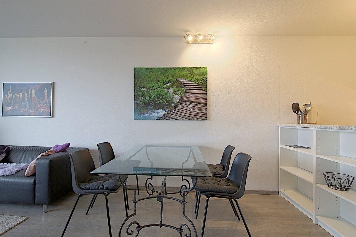 Das Appartement verfügt über einen geräumigen, sonnigen Balkon mit Gartenmöbeln. Ihr Hund darf auch mitkommen