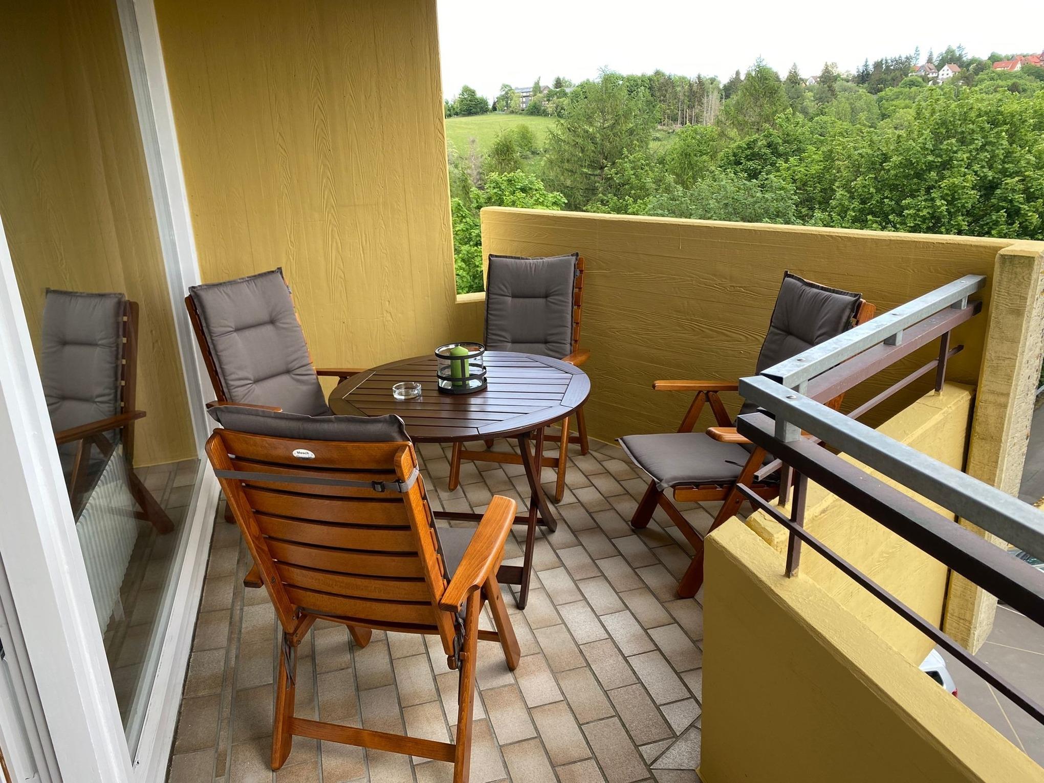 Das Appartement verfügt über einen geräumigen, sonnigen Balkon.