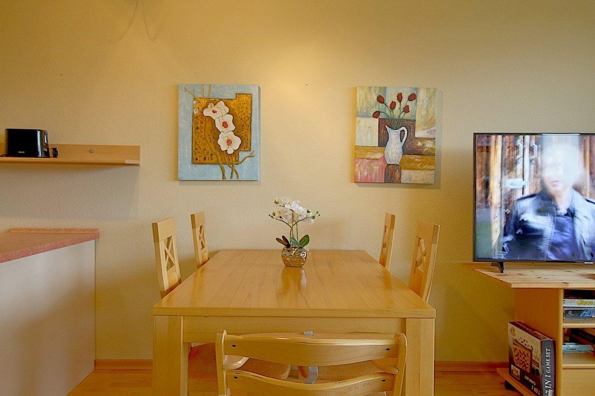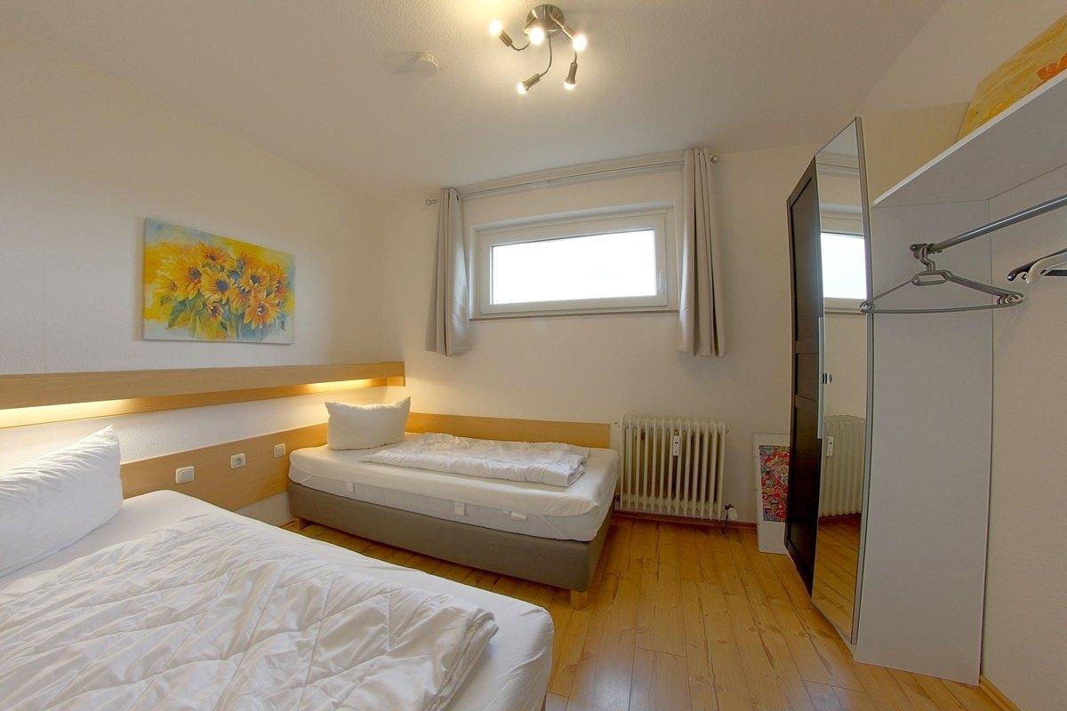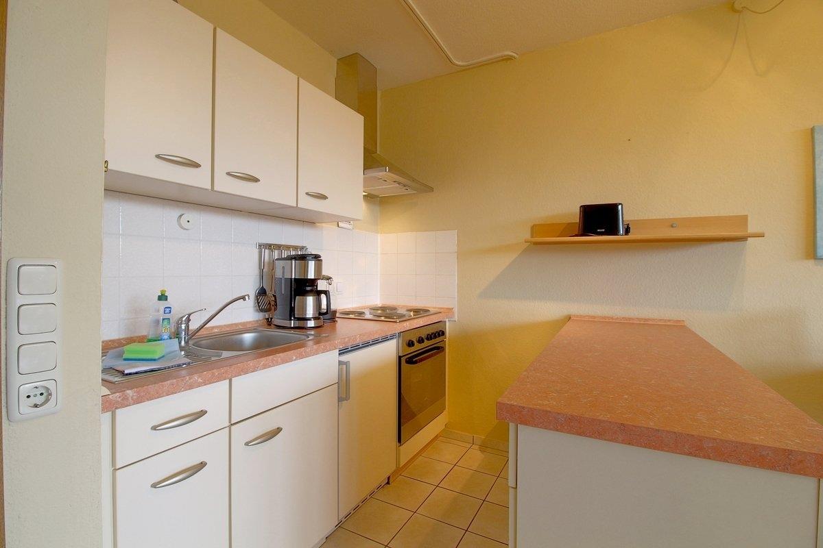 Komfortabel ausgestattete, Nichtraucher- Ferienwohnung mit einem Schlafraum mit 2 Einzelbetten (0,90 x 2,00 m) und Küchenzeile mit Essecke und Wohnraum und TV.[nbsp] Der Wohn-und Schlafbereich ist mit Laminatboden ausgestattet.
