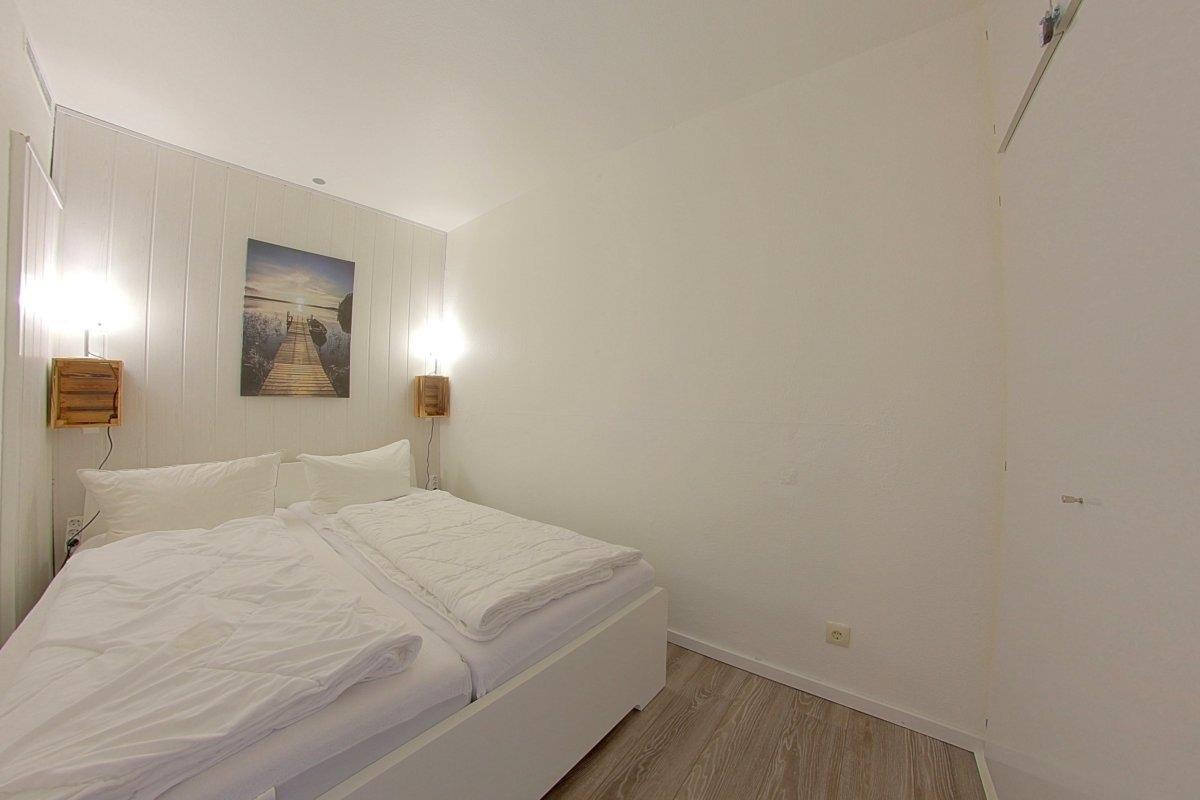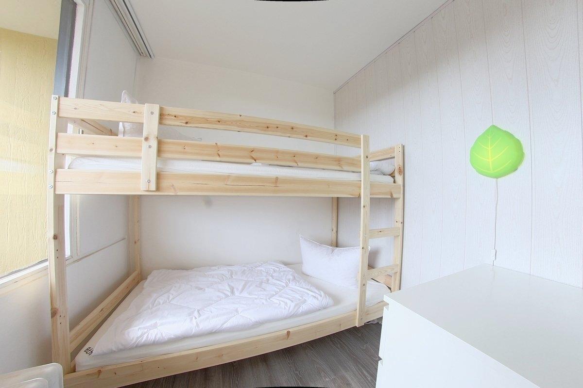 Schick renovierte Nichtraucher- Ferienwohnung mit einem Schlafraum mit Doppelbett (1,80 x 2,00 m) , einem Kinderzimmer mit Stockbett, Offene Küchenzeile mit Essecke und Wohnraum. Der Wohn-und Schlafbereich ist mit Laminat ausgestattet. Kostenloses WLAN ist im Appartement verfügbar