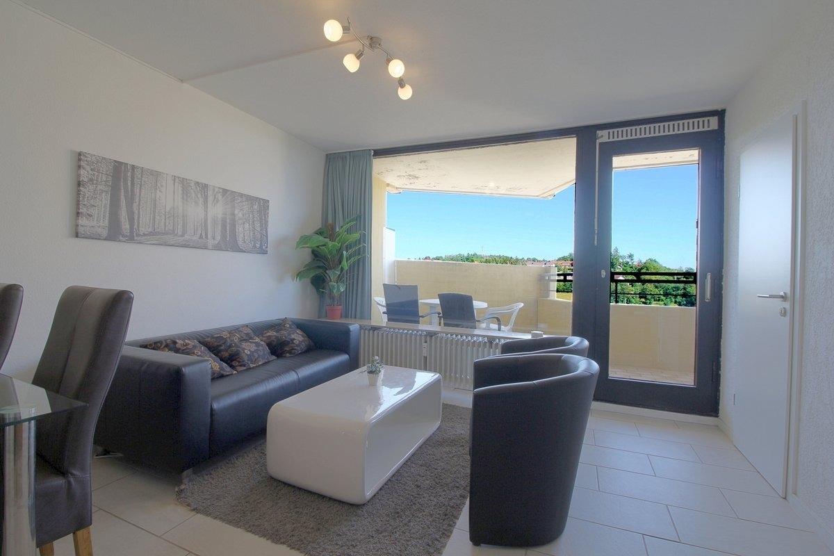 Das Appartement verfügt über einen geräumigen, sonnigen Balkon.