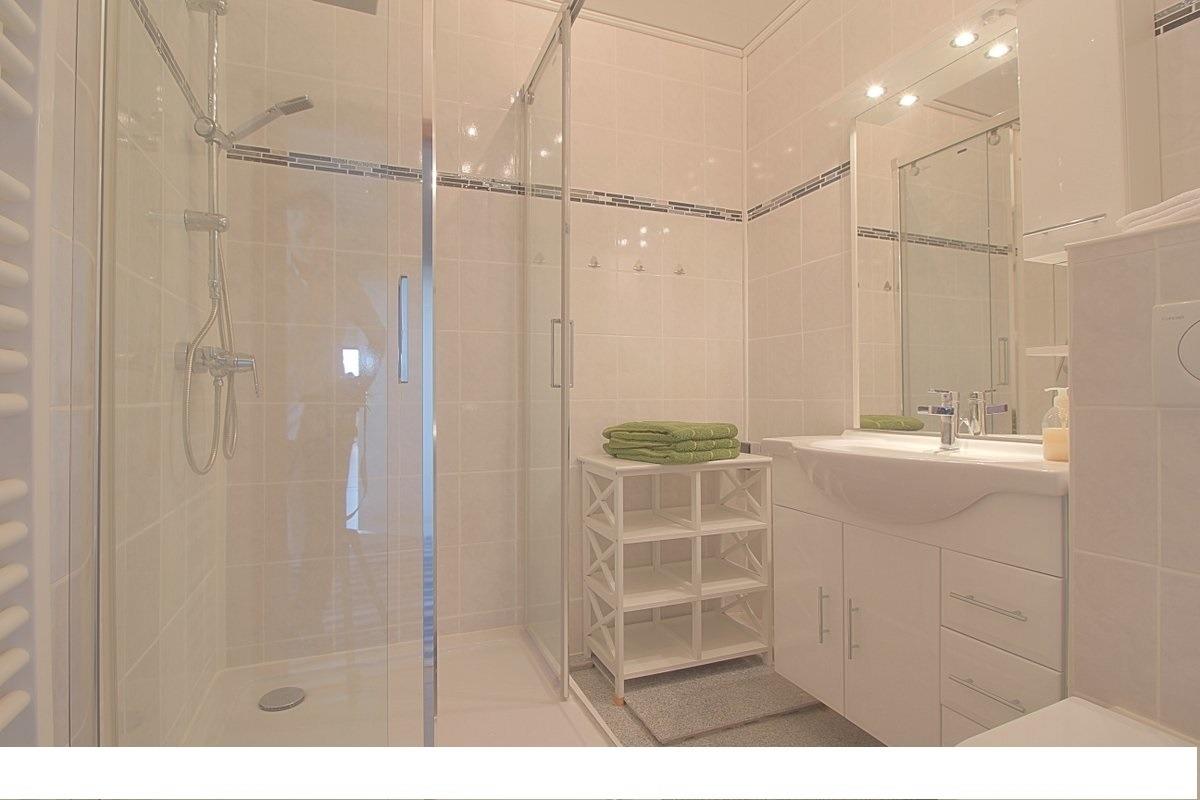 Die moderne Einbauküche mit Geschirrspüler erfreut den Hobbykoch.[nbsp] Die komplette Wohnung ist mit Laminatboden ausgestattet. Duschbad mit WC und ein separates Gäse-WC gehören zur Ausstattung