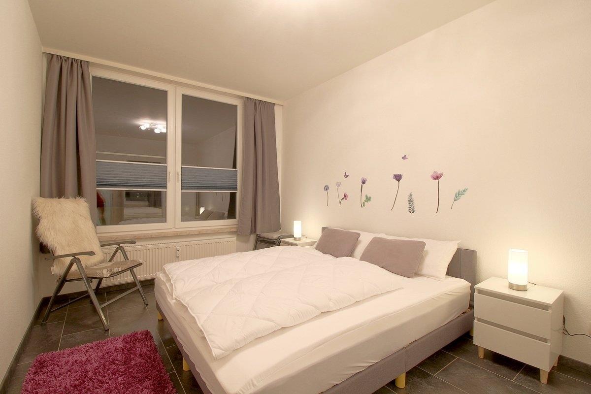 Hier können Sie mit der Familie Urlaub machen. Hochwertig eingerichtete Nichtraucher-Penthousewohnung mit zwei Schlafräumen mit Doppelbett (1,80 x 2,00 m).