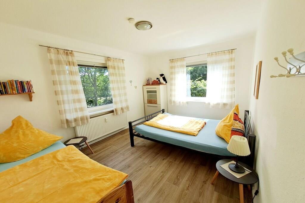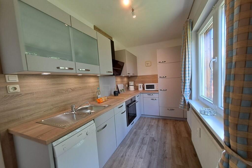 Vores hyggelige ferielejlighed til 2-5 personer ligger i stueetagen. Stuen/spisestuen har kakkelovn, smart-tv og radio. Der er gratis Wi-Fi. To soveværelser står til rådighed: et med en dobbeltseng (2x2m) og det andet med en dobbeltseng (1,40x2m) og det andet med en enkeltseng (0,90x2m). Badeværelset har badekar og vaskemaskine. Køkkenet er udstyret med opvaskemaskine, mikrobølgeovn, keramisk kogeplade og ovn samt køleskab. Der er selvfølgelig også elkedel, kaffemaskine, brødrister, blender og diverse køkkenredskaber. Højstole, sengeheste, spil, bøger og en gyngehest er tilgængelige for vores yngre gæster. Spørg os venligst, hvis du har brug for disse ting.