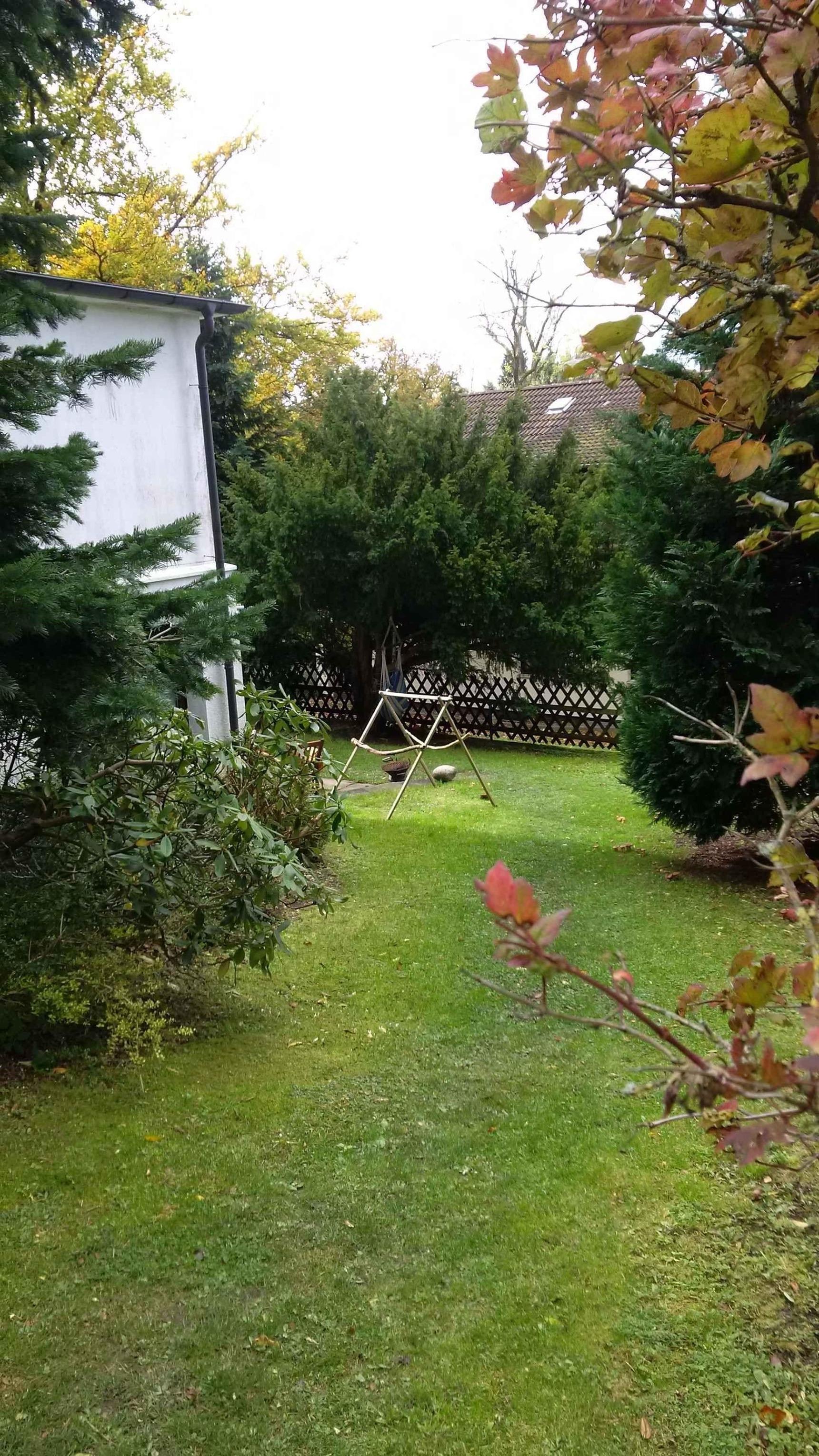 Garten mit Bank und Stühlen
