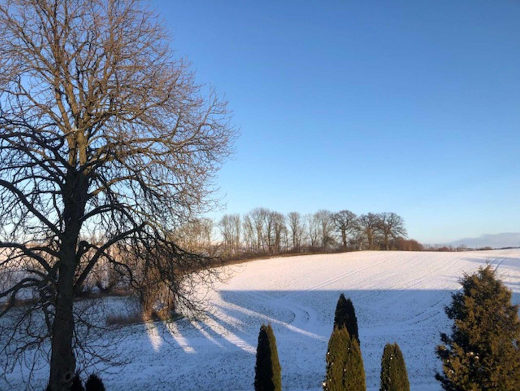 Neben der modernen Heizung kann an kühlen Tagen ein Kachelofen mollige Wärme spenden. Auch das Badezimmer ist hell und geräumig, ausgestattet mit Dusche und WC.