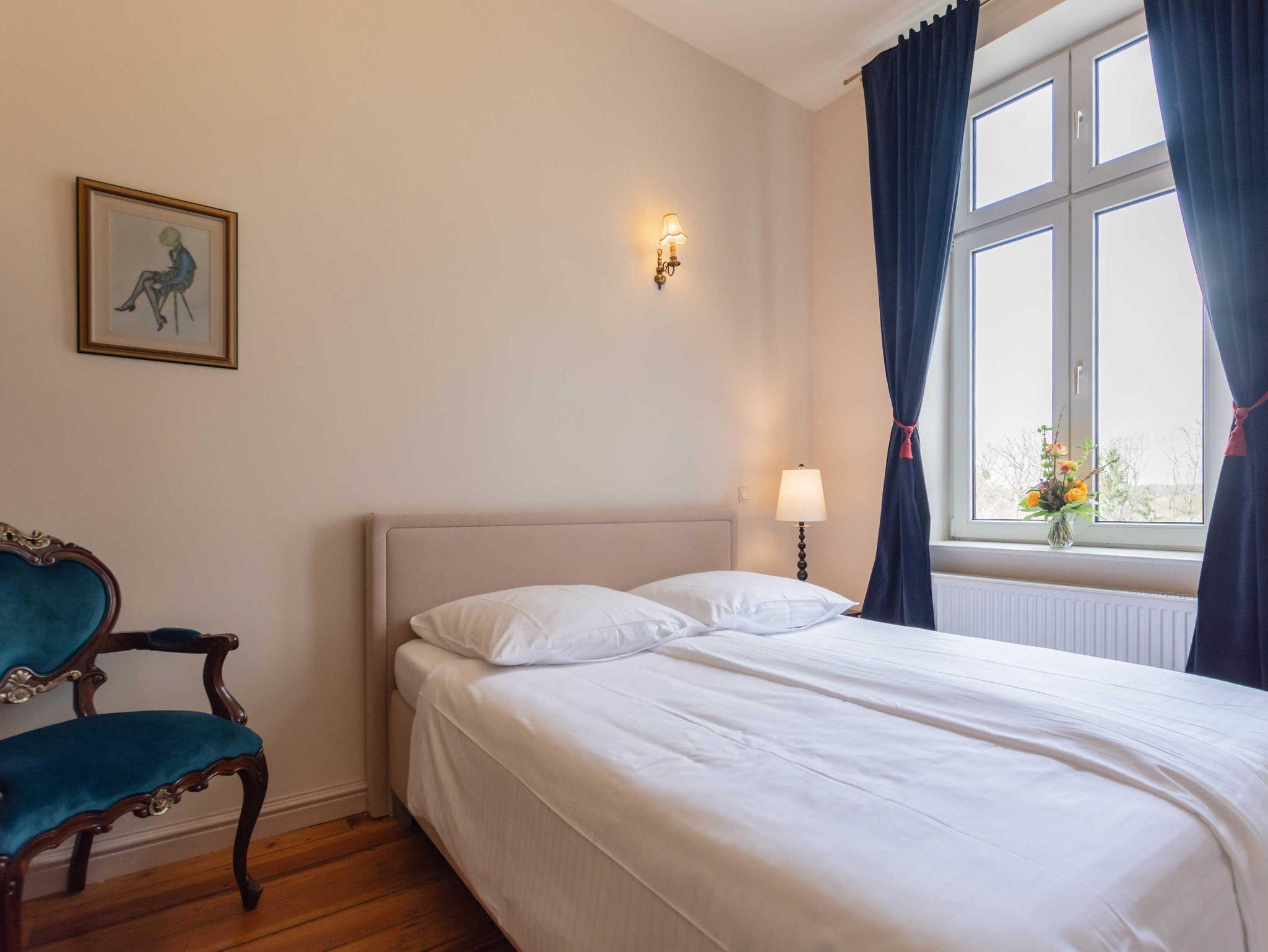 Die gemütlichen Doppelzimmer befinden sich in der ersten Etage unseres Gutsschlosses. Sie sind mit 1,40m bis 1,80m breiten Betten und einer kleinen Sitzecke ausgestattet.