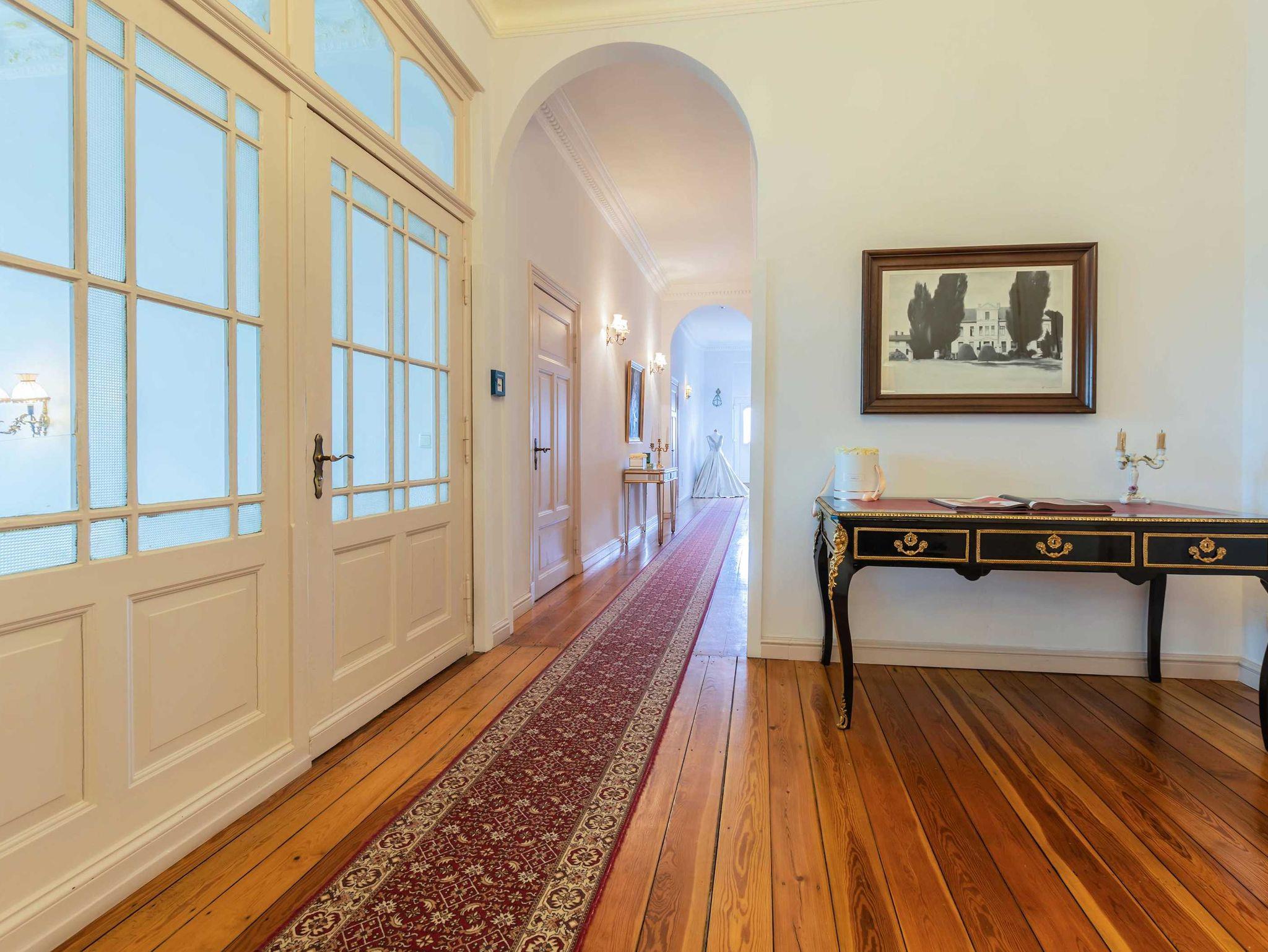 Die geräumigen Doppelzimmer befinden sich in der ersten Etage unseres Gutsschlosses. Stuckdecken, Kronenleuchter und das passende Ambiente sorgen dafür, dass Gäste sich wie auf Zeitreise fühlen.