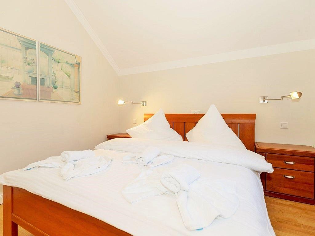 Das gemütliche 1. Schlafzimmer ist mit einem bequemen Doppelbett, Nachttischen sowie einem geräumigen Kleiderschrank eingerichtet. Highlight dieses Raumes ist der dimmbare Sternenhimmel aus Glasfasern.