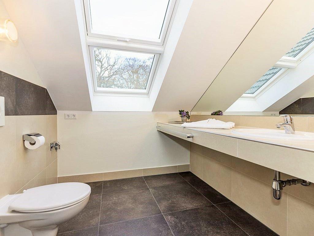 Das Appartement verfügt über 2 separate und moderne Badezimmer / WC. Das 1. Bad ist mit einer Badewanne und einer begehbaren ebenerdigen Raindance-Dusche, das 2. Bad mit einer begehbaren ebenerdigen Dusche ausgestattet. Beide Bäder verfügen über große Waschbecken mit großflächigen Wandspiegeln, WC, Kosmetikspiegel, Föhn, Handtuch-Heizkörper sowie ausreichend Ablagemöglichkeiten.