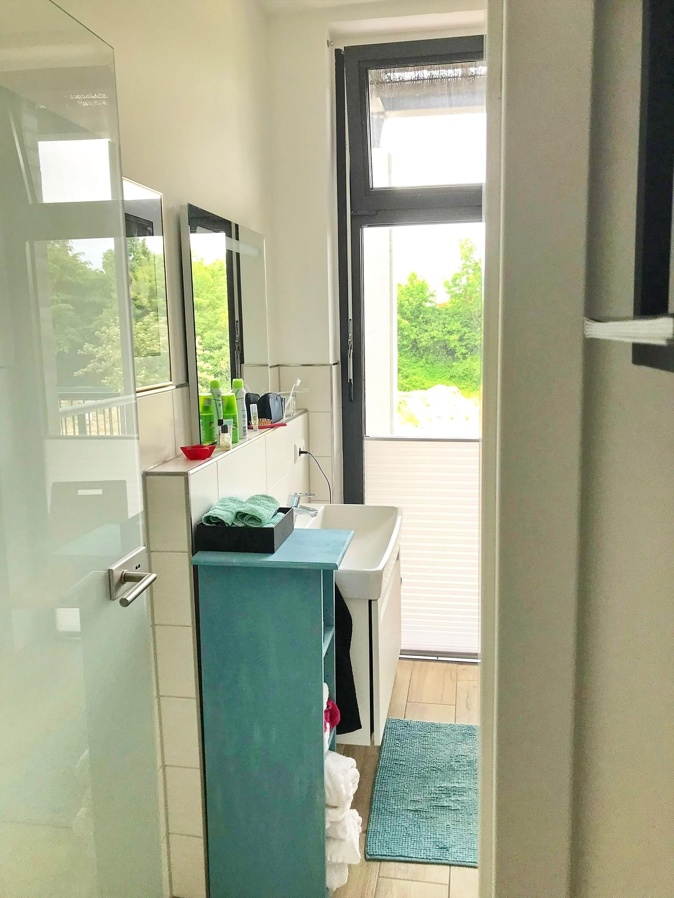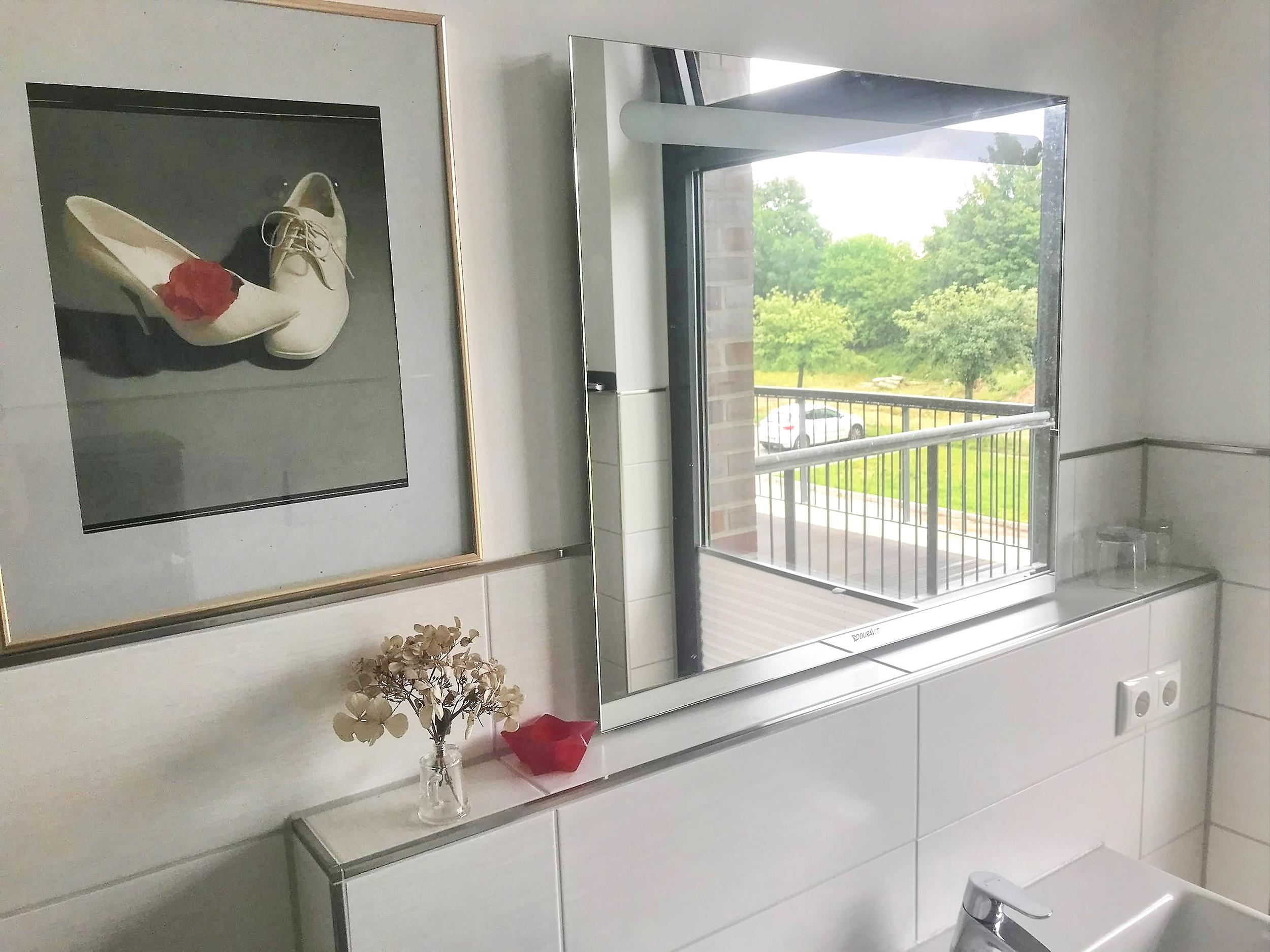 Diese Wohneinheit besitzt ein geräumiges Duschbad mit Waschtisch, WC und Handtuchheizung. Für mitgebrachte Fahrräder steht eine Fahrradbox für 2 Personen bereit. Ihren PKW parken Sie kostenfrei auf einem reservierten Außenstellplatz. E-Ladesäulen in 100 Meter Entfernung.