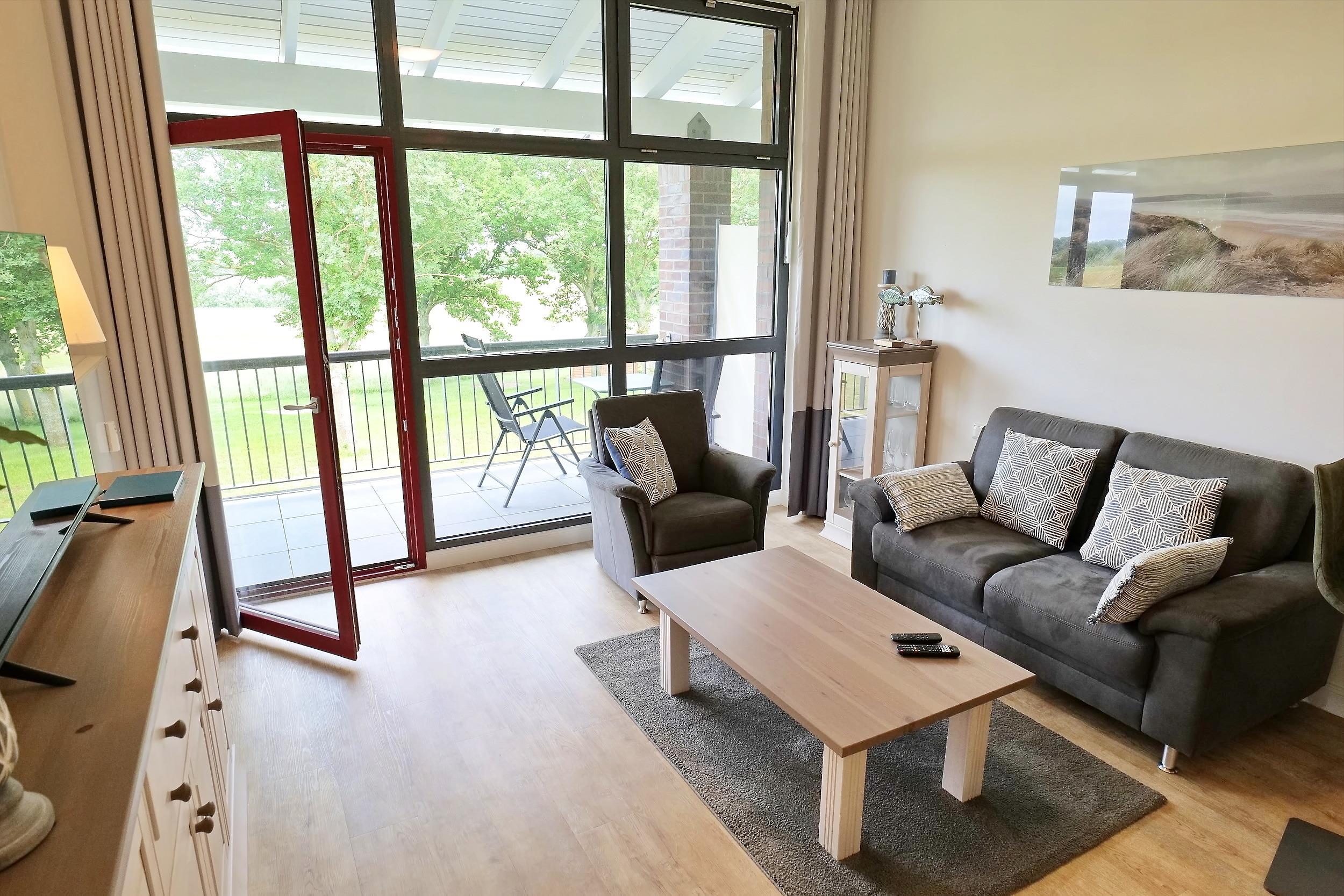 Die Ferienwohnung Golf Nest am Meer im Ferienresort Aurora Vista ist ein ideales Domizil für Ostseeliebhaber. Das 2,5-Zimmer Appartement bietet Ihnen auf einer Wohnfläche von 66qm geräumiges Wohnen im Urlaub. Sie erwarten eine offene Küche, Wohnzimmer, Schlafzimmer sowie ein geräumiges Entree mit einem zusätzlichen komfortablen Schlafsessel. Vom großzügigen Balkon dieses türkis gestalteten Appartements aus blicken Sie vom 1. Stock direkt auf das Grün des 18-Loch Golfplatzes und die dahinter liegende Marina. Vom Balkon aus schauen Sie direkt auf das Greenfee. Der weitläufige überdachte Balkon beschattet Sie bei praller Sonne und ist auch bei Regen ein sicherer Wohlfühlort. Den Strand der Ostsee erreichen Sie in ca. 1000 Meter. Die dort gelegene Marina Hohenwieschendorf bietet Segelflair und geschäftiges Hafenambiente.