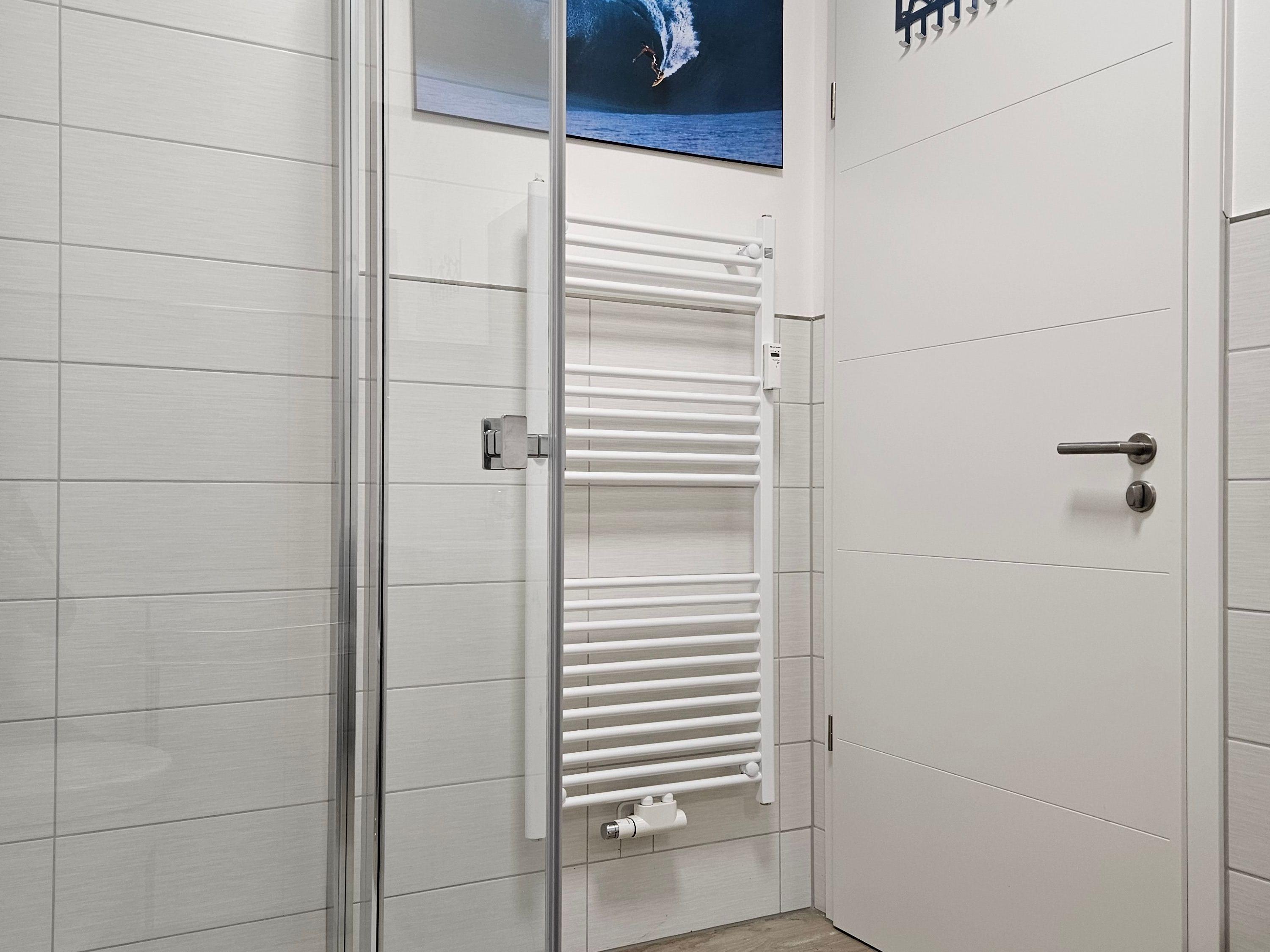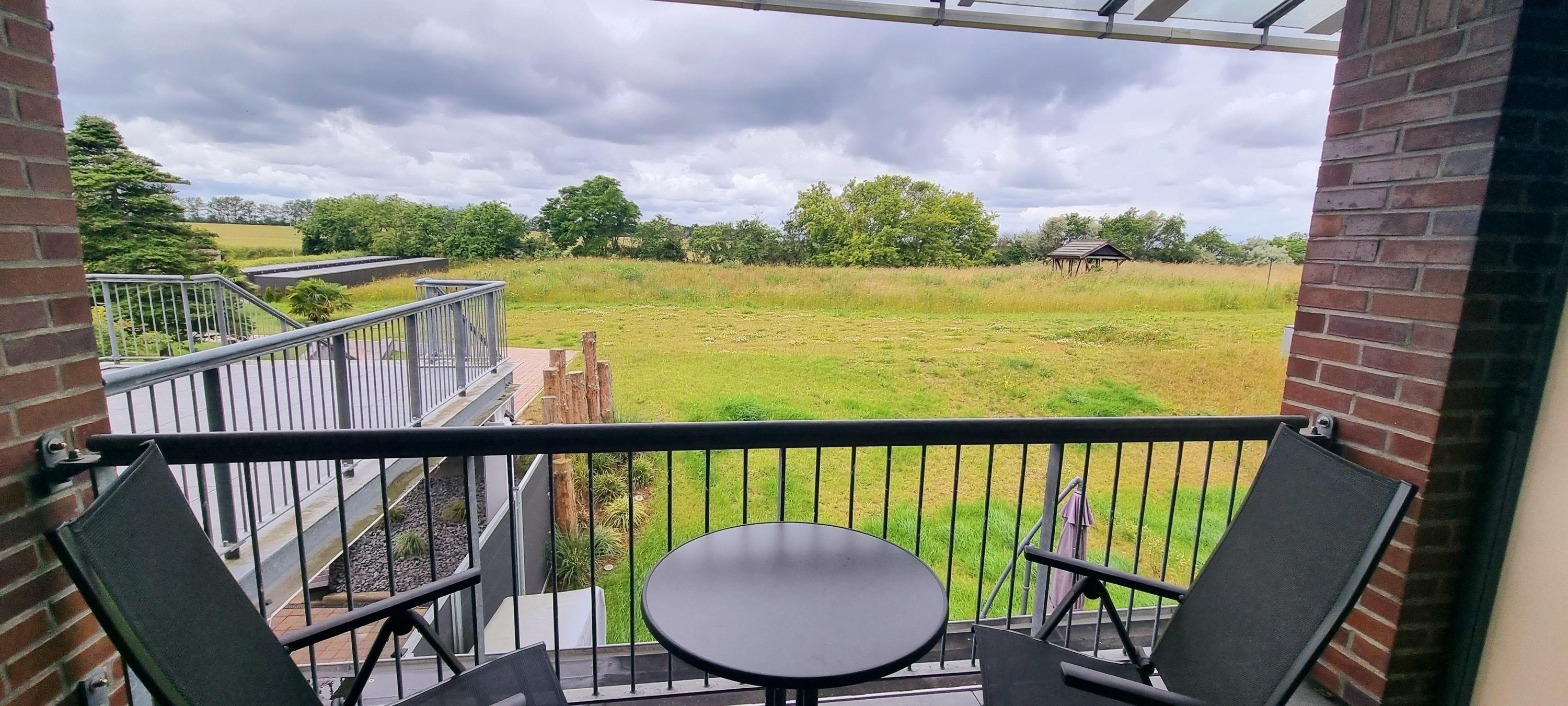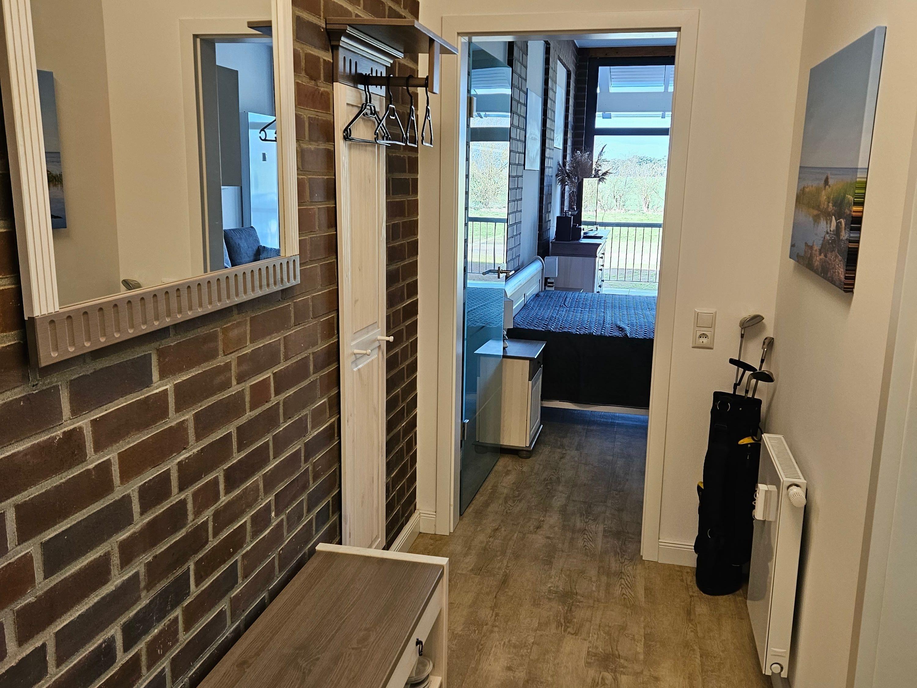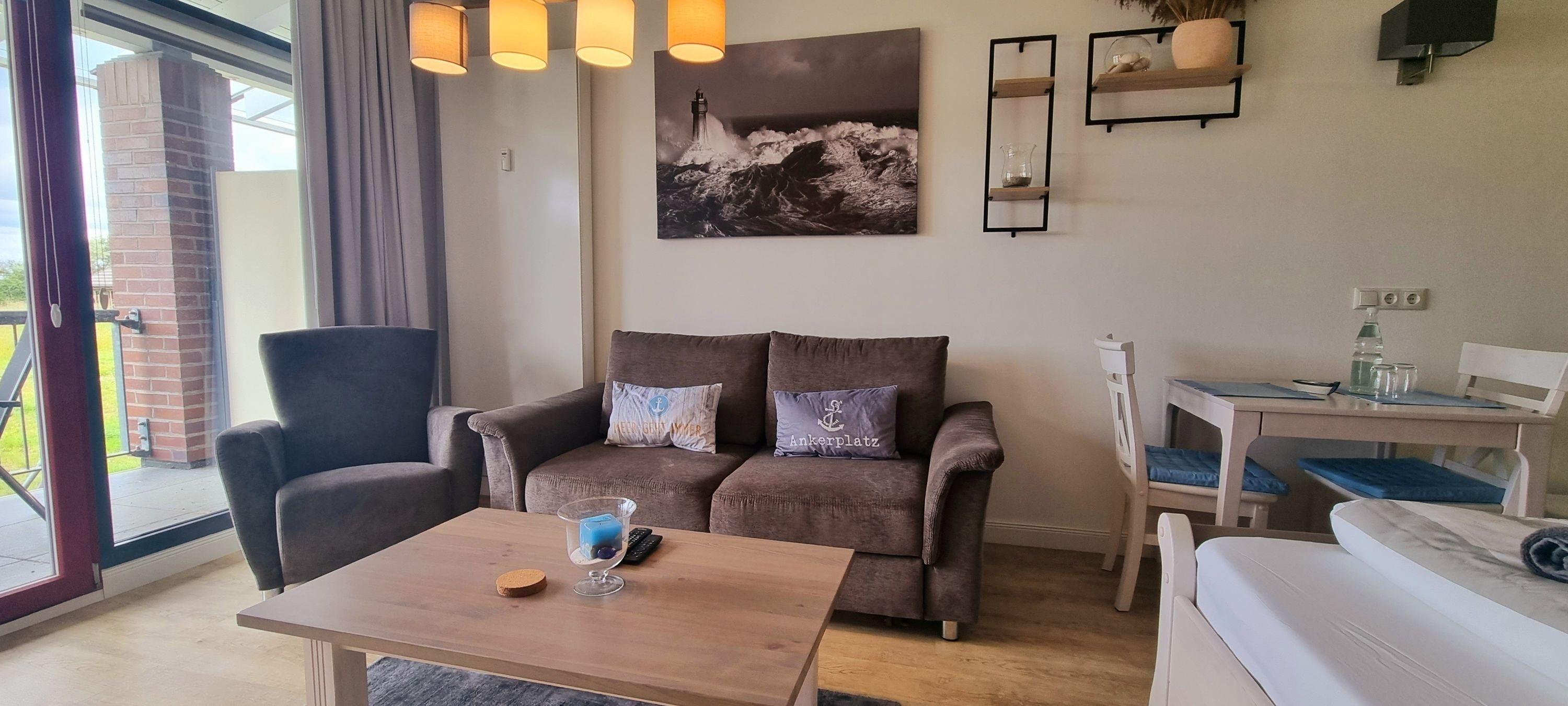 Unser „Küstenkrümel“ befindet sich auf der Westseite der Anlage. Auf dem möblierten Balkon genießen Sie die Abendsonne mit freiem Blick in die Natur. Der lichtdurchflutete Wohn-/Schlafbereich bietet höchsten Komfort dank seiner neuwertigen Möblierung, Audio-/TV – Anlage und einer vollausgestatteten Küche. Fotoleinwände mit faszinierenden Motiven aus der Umgebung sorgen für eine gemütliche, maritime Atmosphäre. Ein ansprechendes, geräumiges Badezimmer mit ebenerdiger Dusche und Echtglasabtrennung sowie Flur und Ankleideraum mit genügend Stauraum vervollständigen Ihr Feriendomizil
