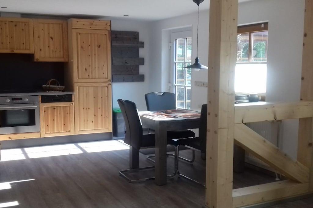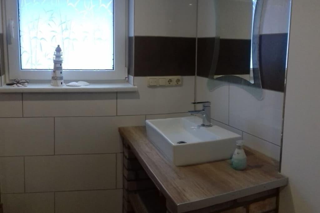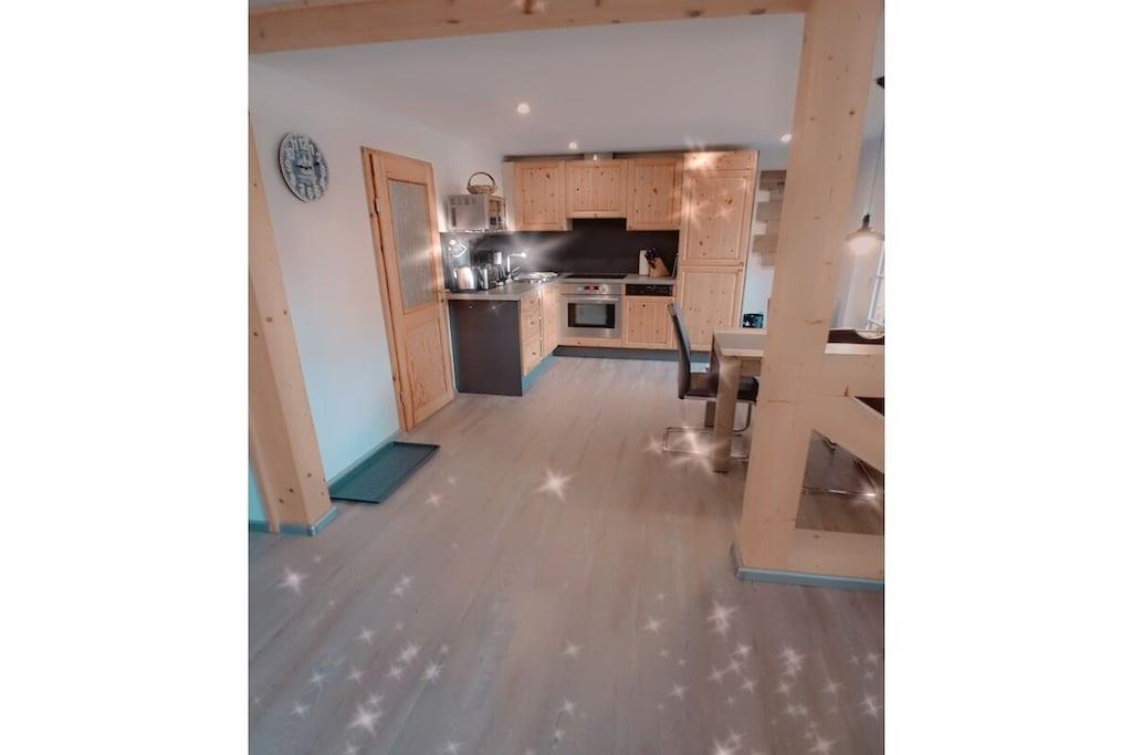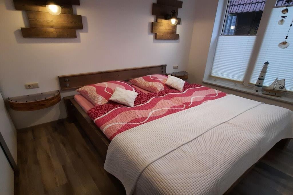 Jeg vil med glæde byde dig velkommen til denne solrige, hyggelige ferielejlighed nær Østersøen, som blev nyrenoveret i 2021. Renoveringen blev udført med stor sans for detaljer. Nyd en fuldt udstyret, rummelig lejlighed, hvor du kan vågne op med solen og afslutte dine aftener med at slappe af på solterrassen. Et åbent køkken/stue med synlige bindingsværker inviterer dig til at blive hængende. Du kan slappe af i den komfortable hjørnesofa (med det originale hjulmagerværksted i baggrunden) og måske se lidt fjernsyn. Soveværelset har en rummelig dobbeltseng og et skydedørsskab. Det store panoramavindue tilbyder udsigt over et smukt damlandskab. Badeværelset er rustikt, men moderne, med en stor bruseniche.