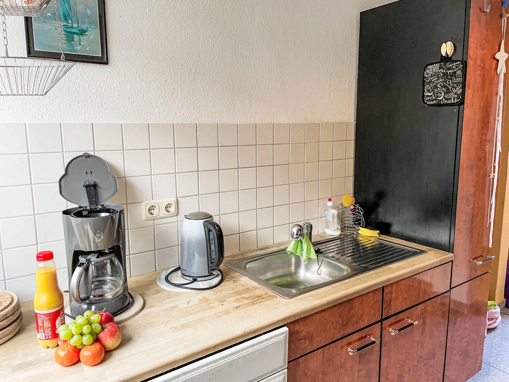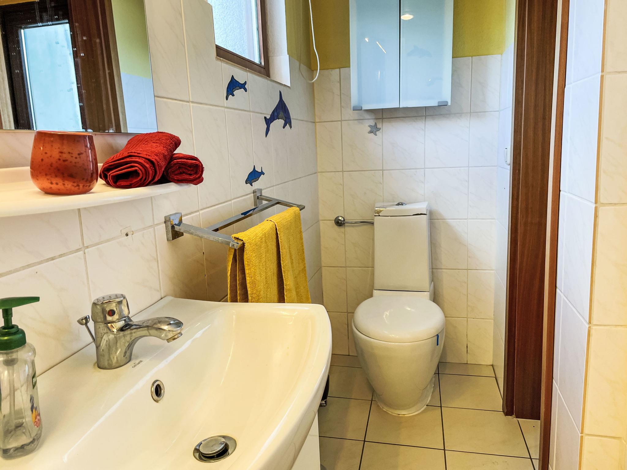 2-room semi-detached house 50 m2, on the ground floor. Practical furnishings: living/sleeping room with 1 double sofabed, Scandinavian wood stove, dining table, satellite TV, radio and CD-player. Exit to the terrace. 1 room with 1 french bed (160 cm, length 200 cm). Kitchen (oven, dishwasher, 4 ceramic glass hob hotplates, toaster, kettle, microwave, electric coffee machine). Shower/WC. Gas heating, underfloor heating. Terrace. Terrace furniture, barbecue (portable), deck chairs (2). Facilities: baby cot for up to 2 year olds (extra), logs (extra). Please note: non-smoking house. Maximum 2 pets/ dogs allowed. Smoke alarm, fire extinguisher. Bookings are only permitted for tourist purposes.